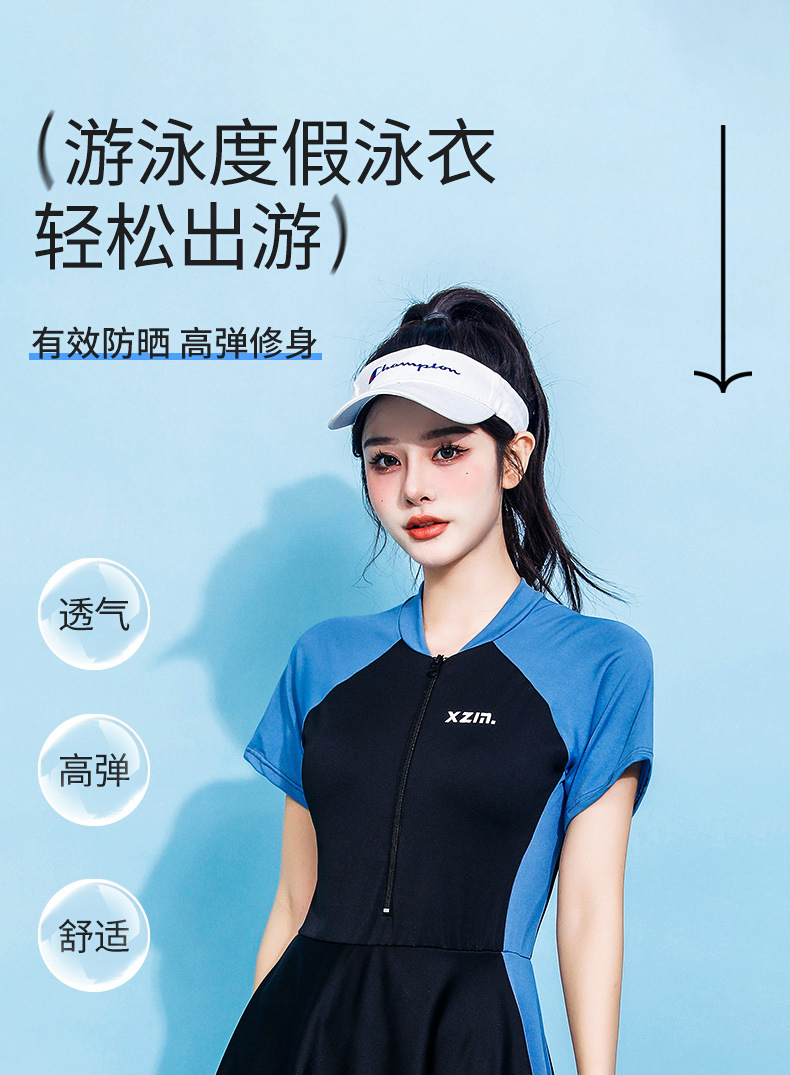 人気の大きいサイズの女性用水着、太った女性向け、温泉旅行用痩身カバーアップスカート水着、コンサバスポーツ水着卸売