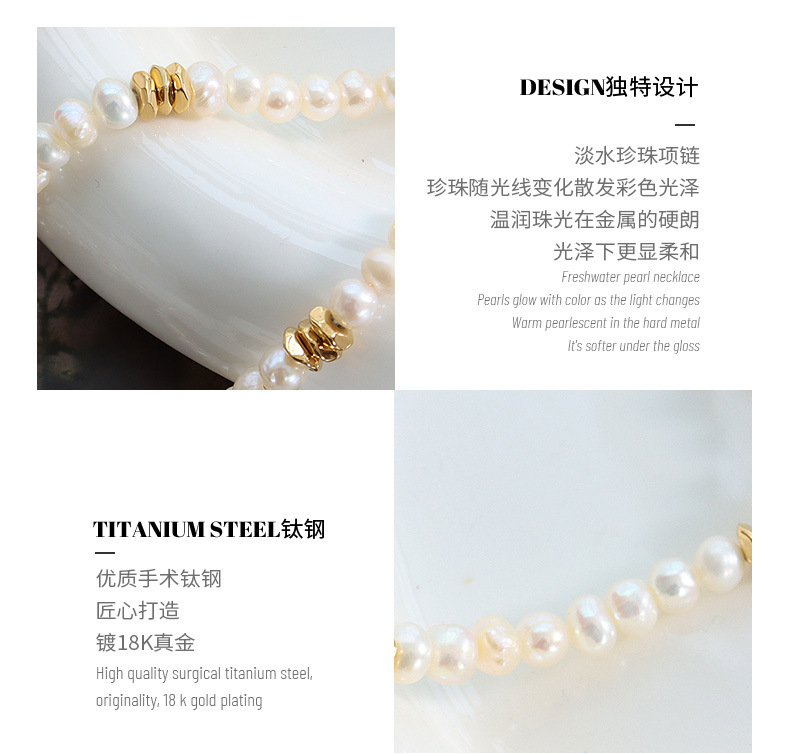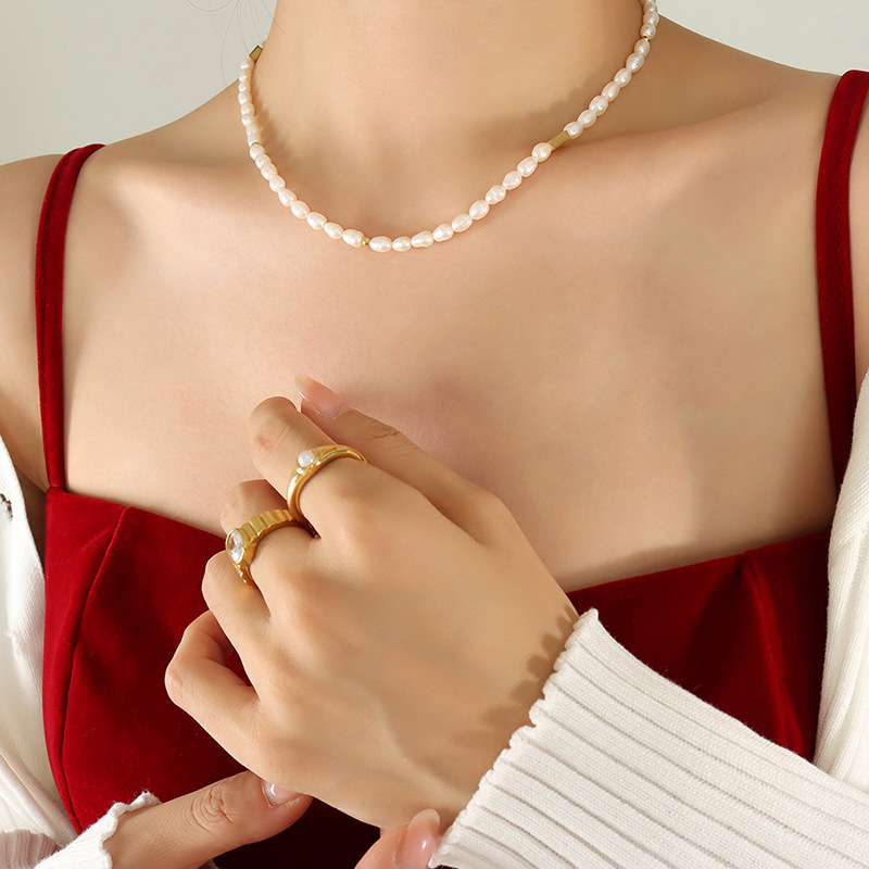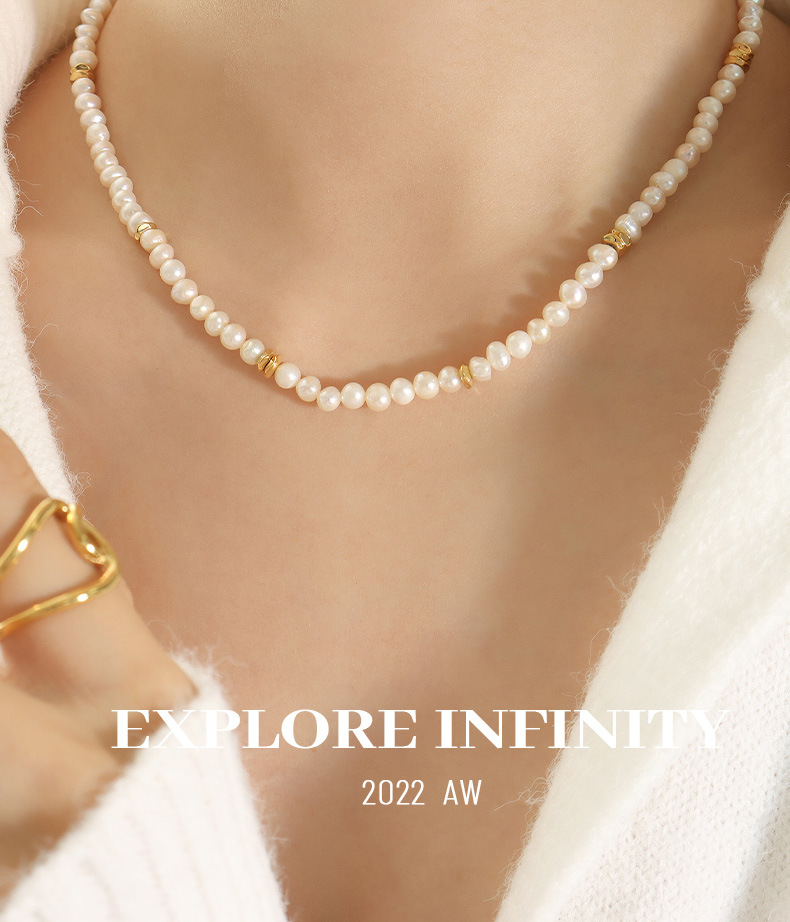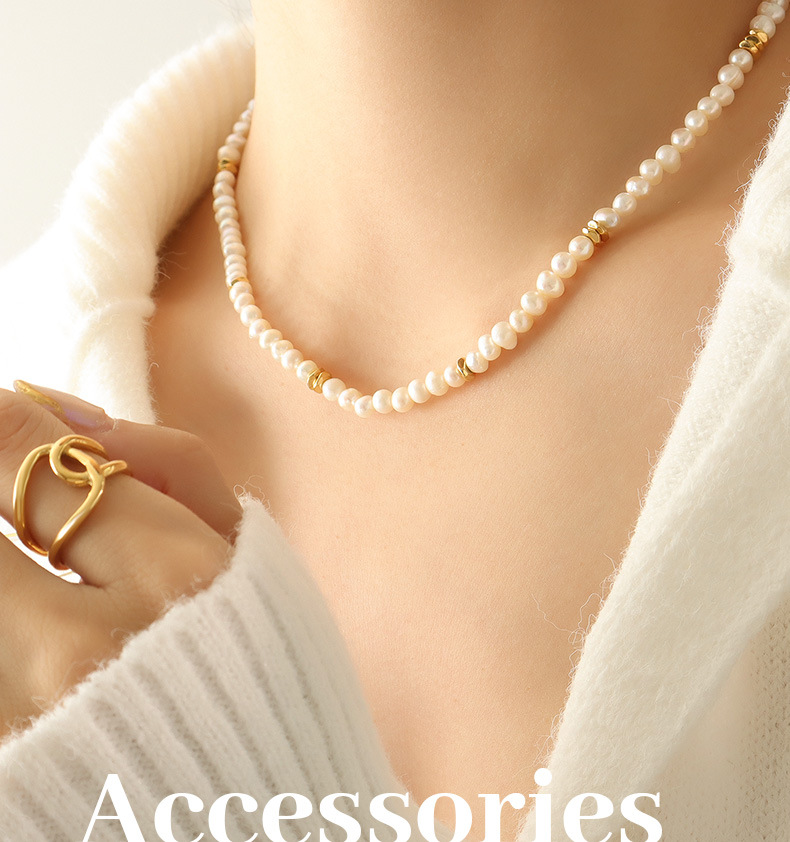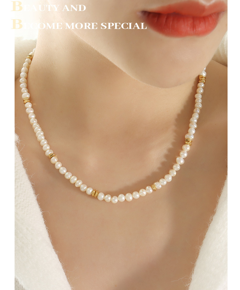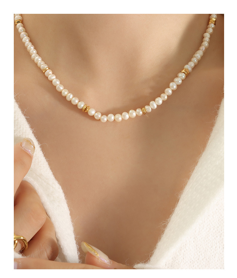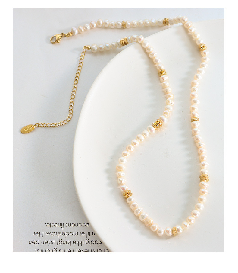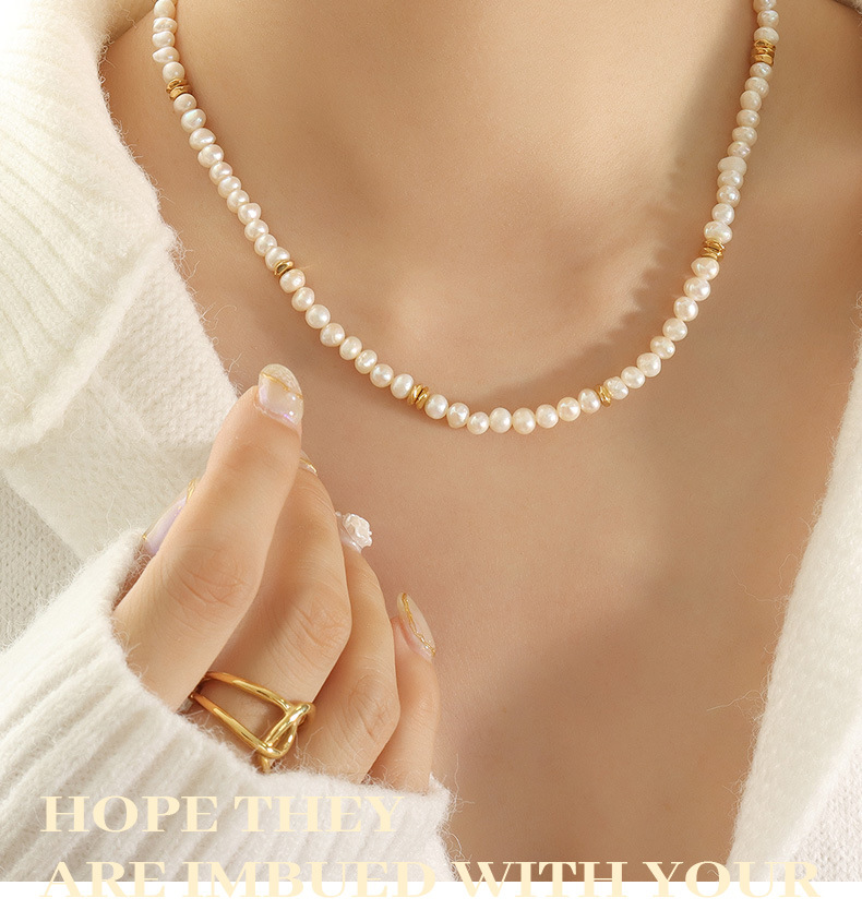 フレンチロマンチックバロック淡水パールステンレスアクセサリー気質ネックレス鎖骨チェーンパールマザースタイル
