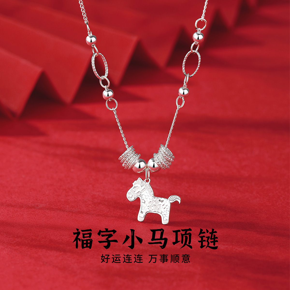 摩天轮小众轻奢国风高级感马年本命年纯银锁骨链足银福字小马项链