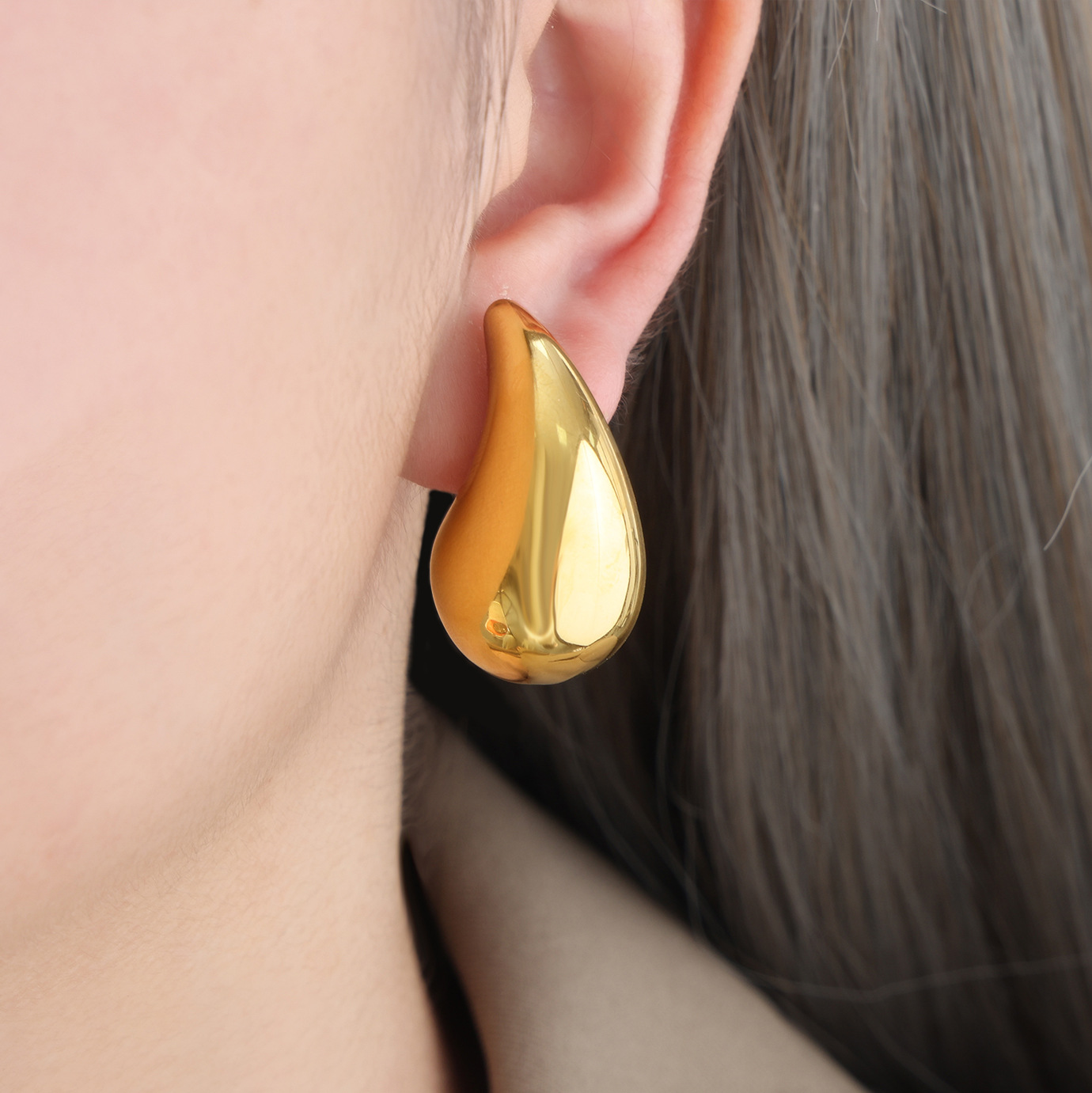 英倫風小衆ヴィンテージアクセサリー個性幾何学水滴造形モザイクデザイン感チタン鋼金メッキイヤリング