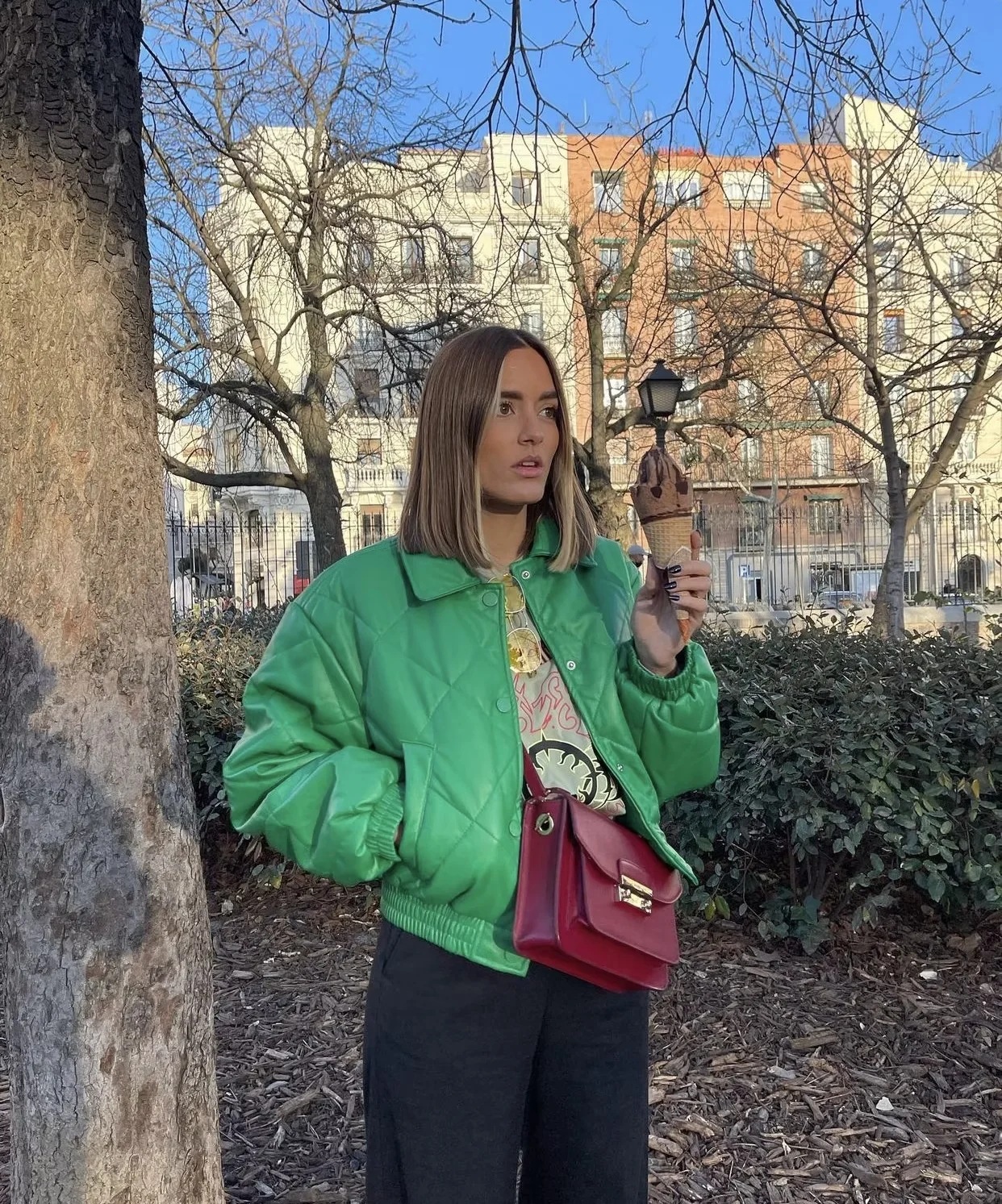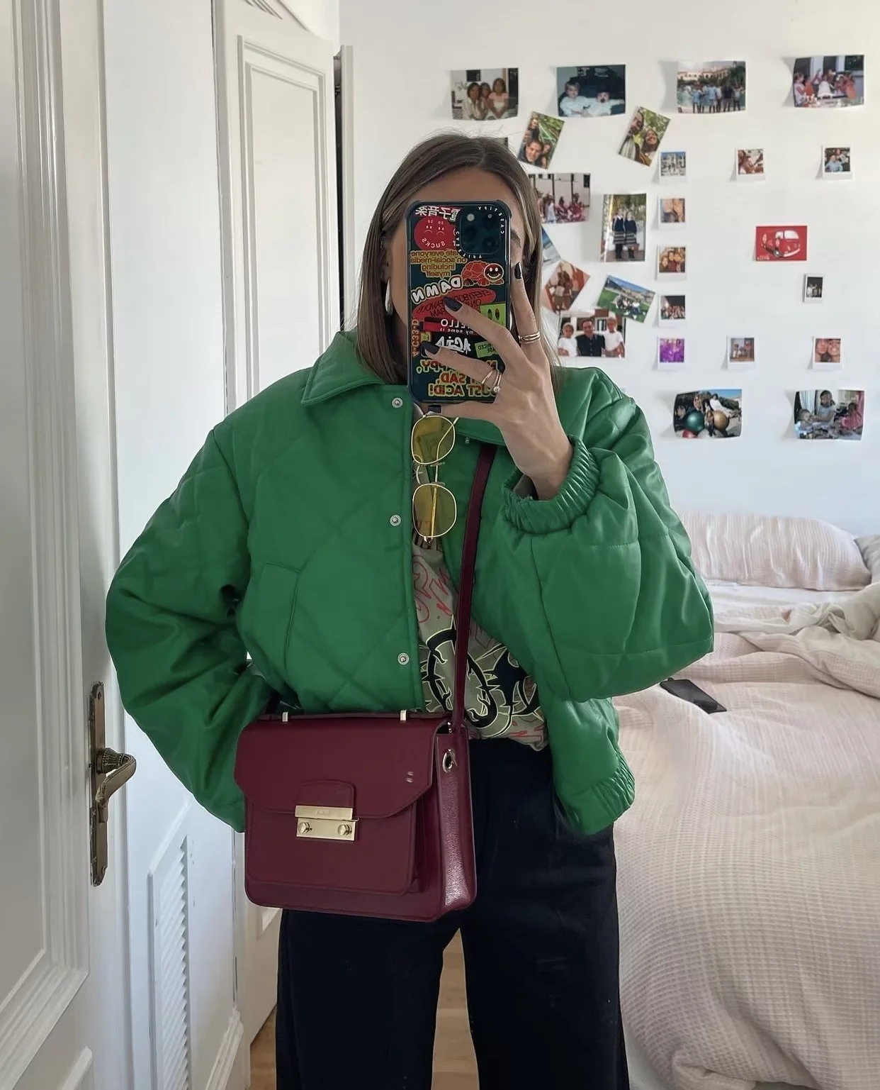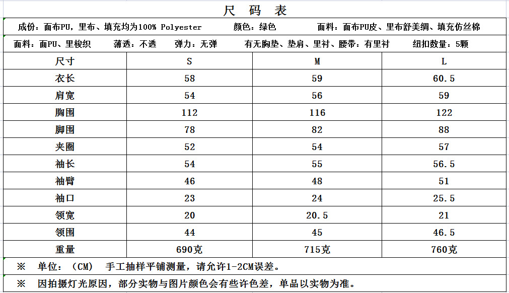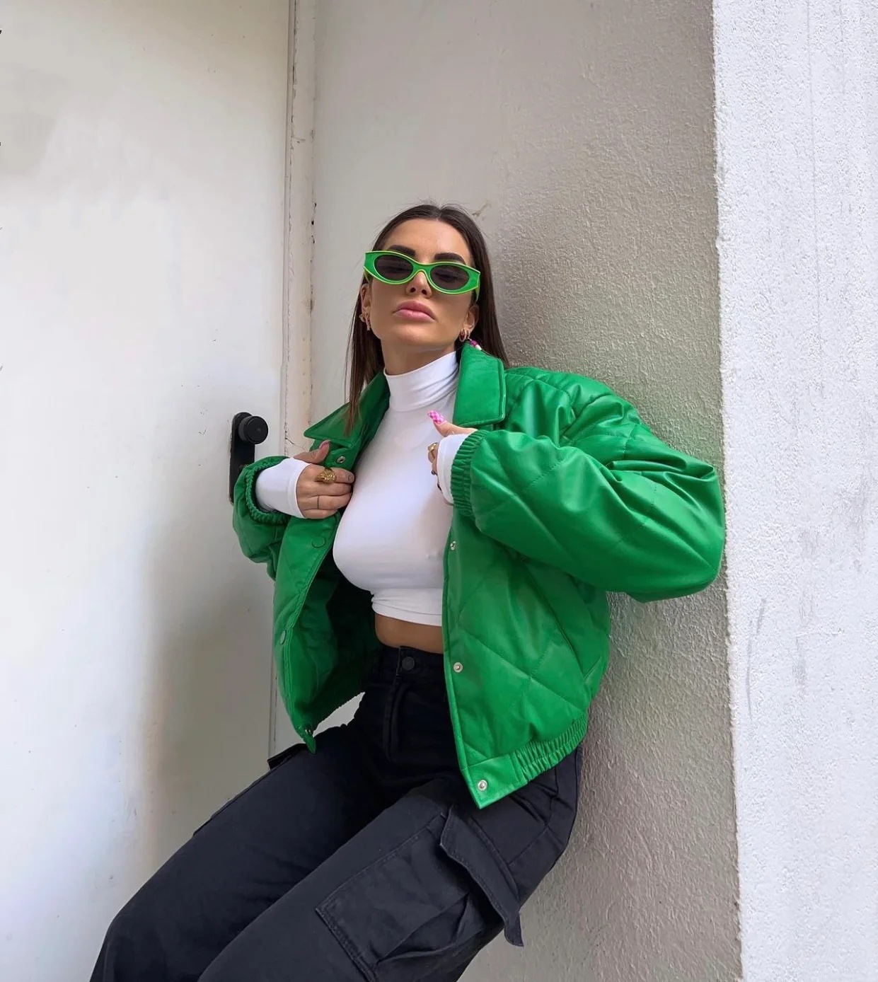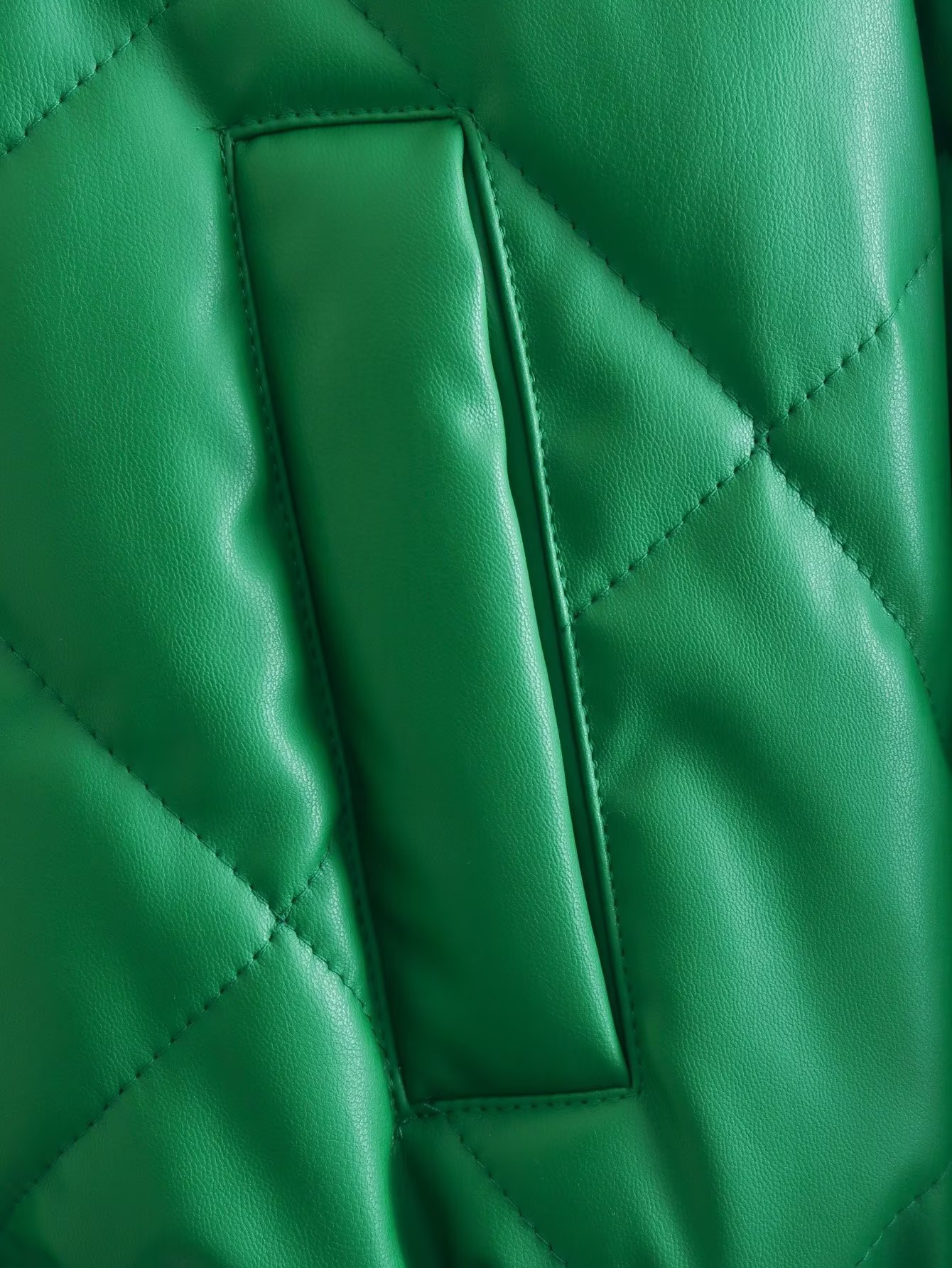 国境を越えた女装卸売り2023秋の新商品欧米風グリーンpu模造綿服ジャケット上着