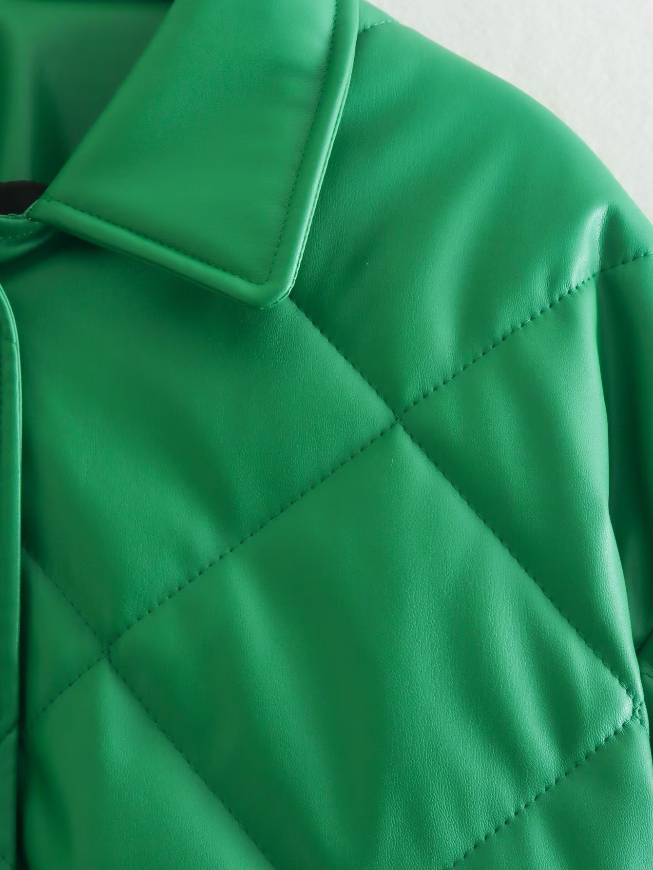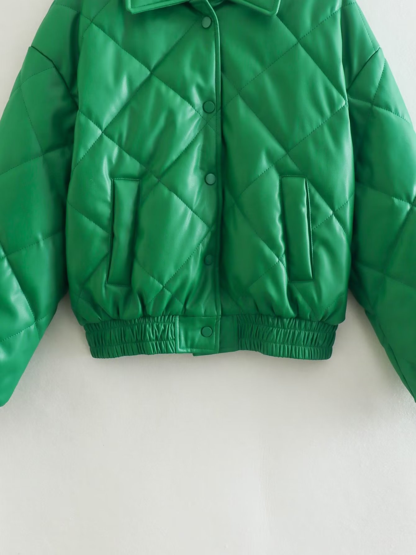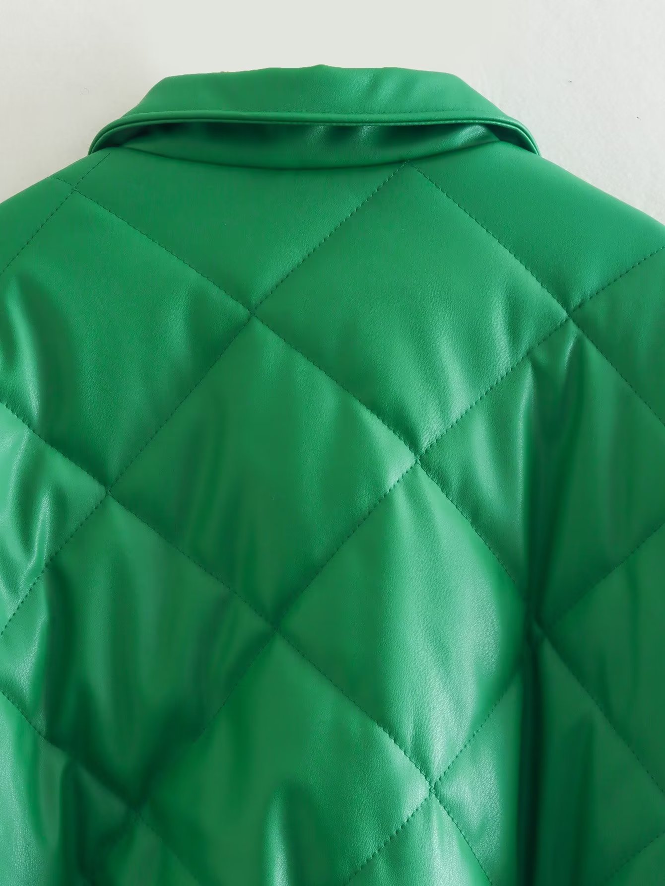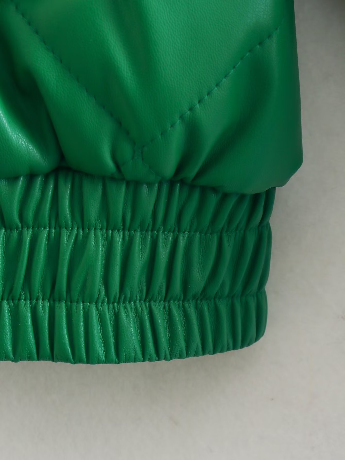 2024年秋新作 欧米風 グリーンPUレザー風コットンジャケット ショートコート ジャケット トップス 輸入婦人服卸売