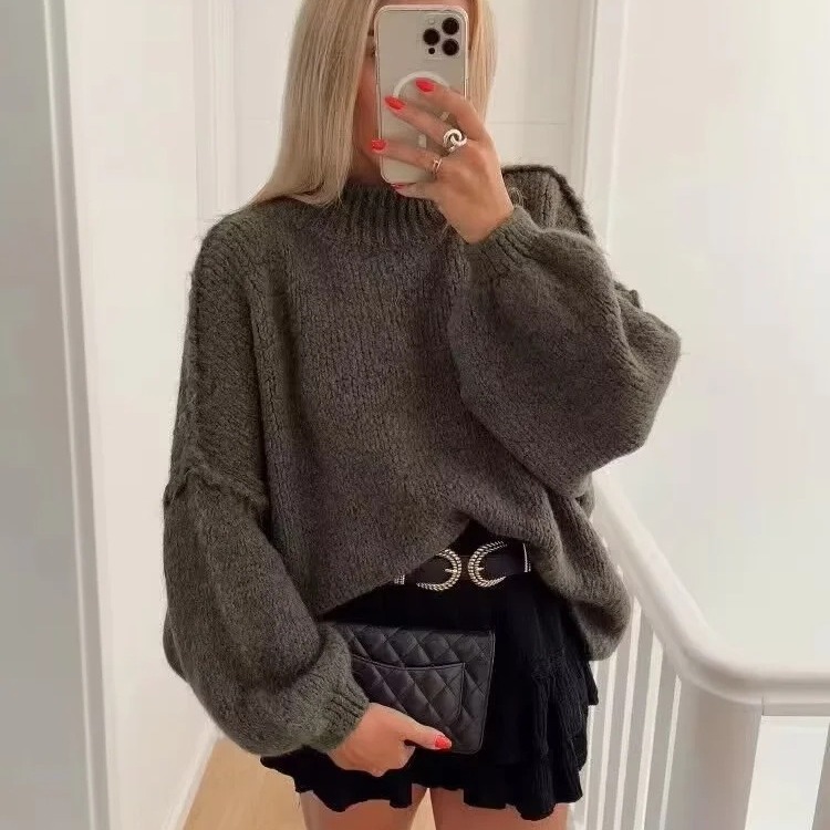 国境を越えて欧米の女装2023秋の新しい気質丸首シンプルな風の薄いニットA34318