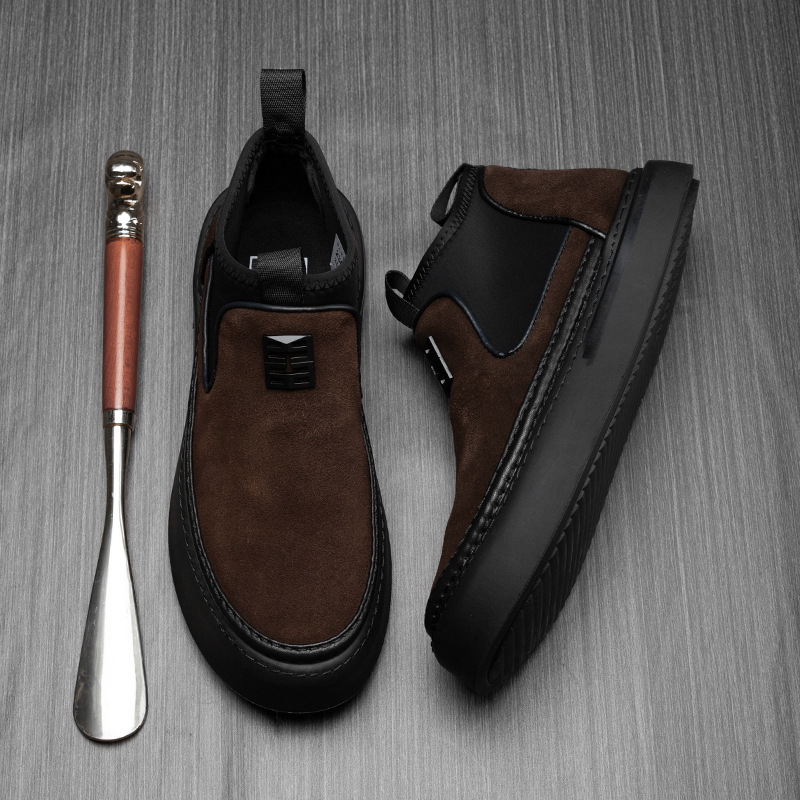 チェルシー靴男ショートブーツ冬ベルベット男靴カジュアルタバコ筒靴英倫風皮靴厚い底マーティン靴綿靴
