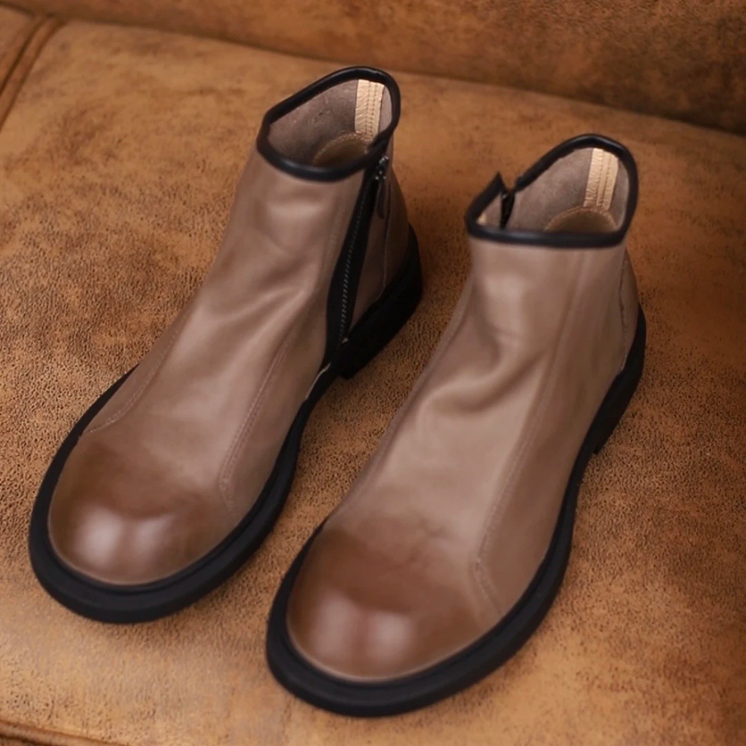 メンズシューズ 新作 秋冬 メンズ 本革 ラウンドトゥ フラット感 レザーブーツ イギリス風 多用途 ショートブーツ ジッパー付き マーティンブーツ