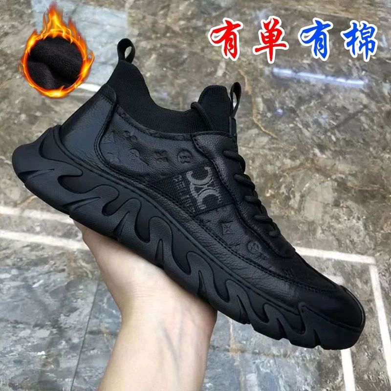 秋冬メンズシューズ新作本革ハイカット裏起毛ビジネスカジュアル革靴メンズ一層牛革綿靴卸売