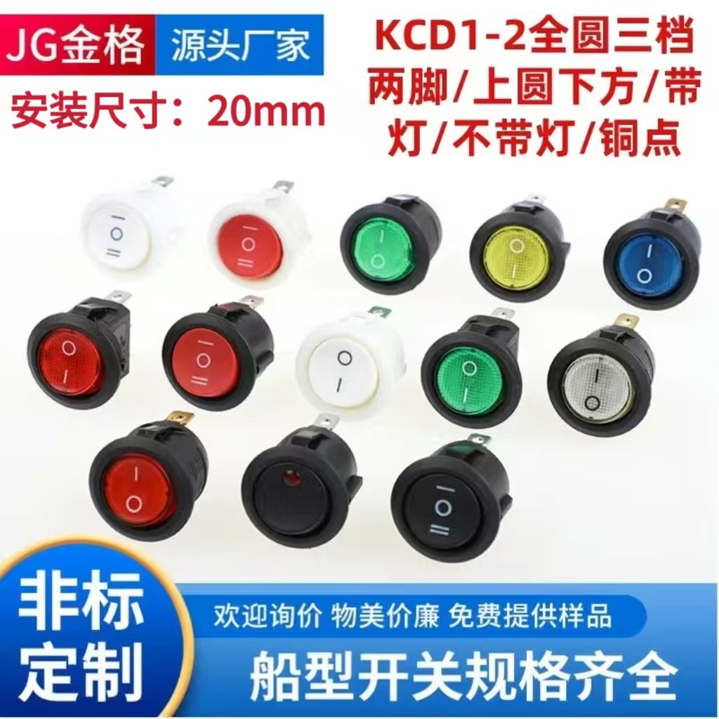 小型円形船型スイッチ開孔15mm上円下板スイッチKCD2電源ボタン銅