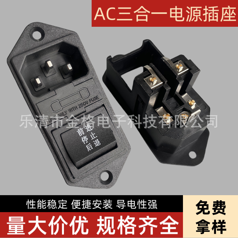 ACソケット スリーインワン電源器具ソケット カードタイプ スイッチ付き ヒューズソケット 3in15A