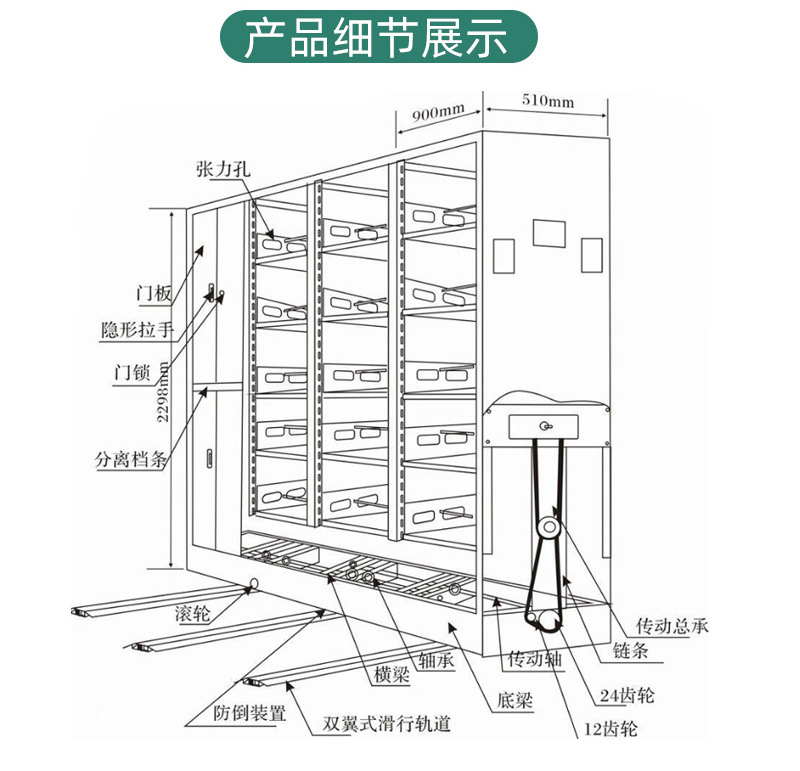 スマートファイル密集棚一体型電動密集棚手回し移動軌道鋼製ファイル室密集棚