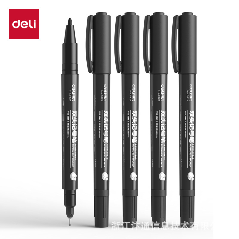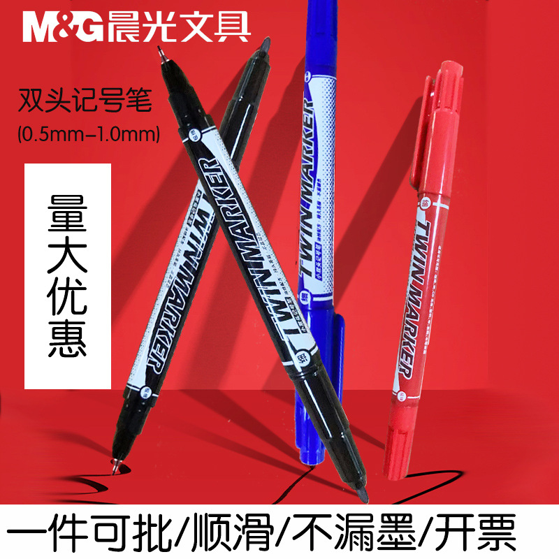 モーニングライト小型双頭マーカー齐心油性細字フックペン黒防水速乾 V7403 1 個卸売