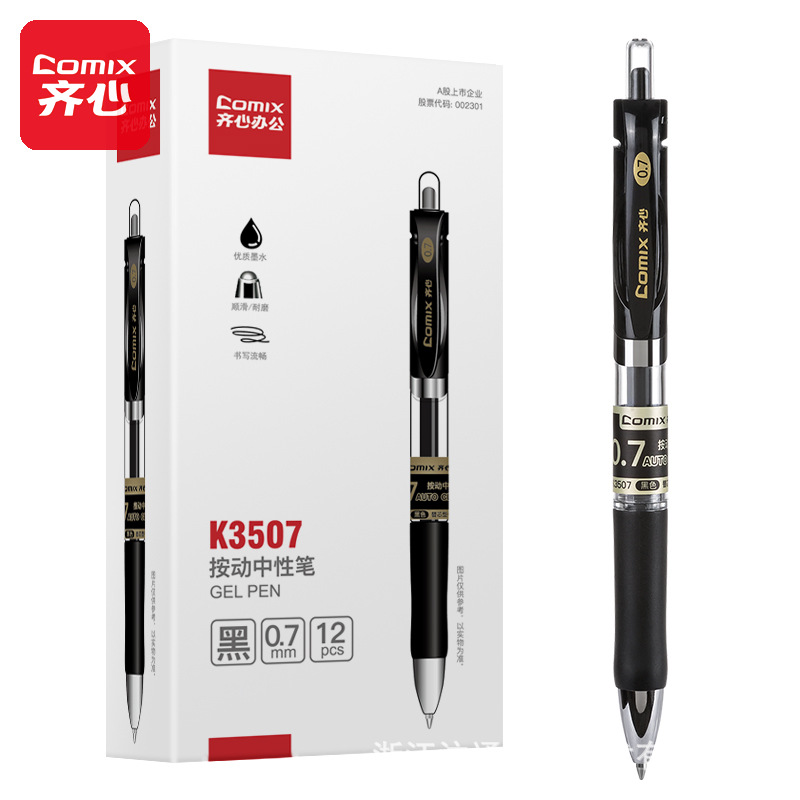 齐心K3511按动中性笔黑色笔财务办公教师红笔签字晨光K35同款文具