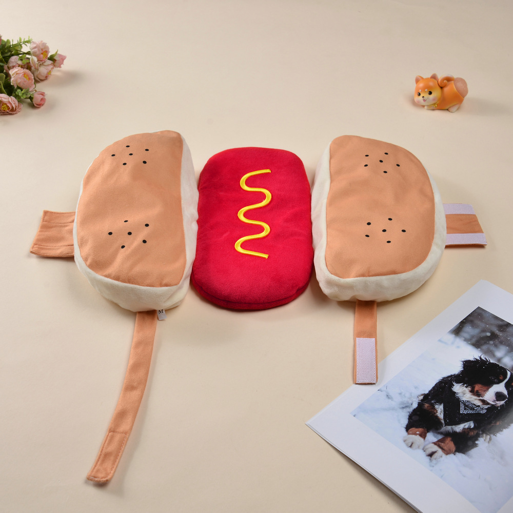 国境を越えたペットの犬の服、秋と冬のハンバーガーとホットドッグの服、ハロウィーンのペットの面白い変身服、ドレスアップ工場