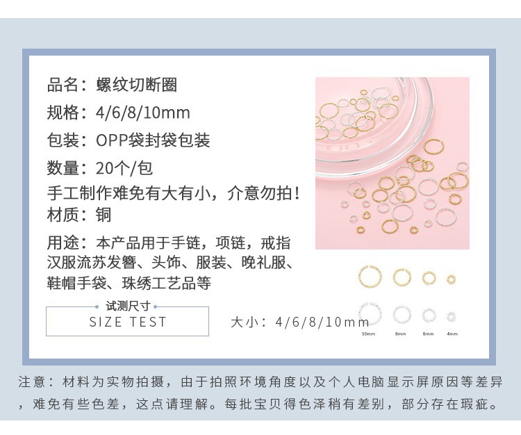 3-20mmシングルラウンドオープンリングビーズ装飾品diy手作りイヤリング材料バッグ髪飾りヘアかんざしアクセサリー