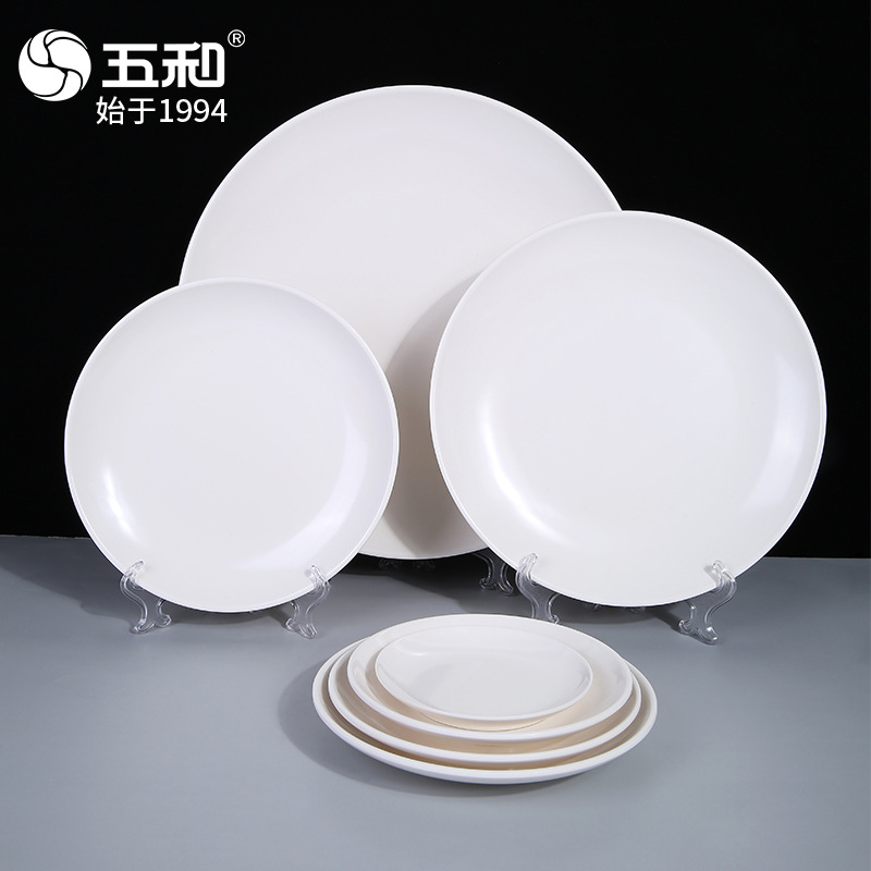 Wuhe メラミン食器白ラウンドプレートフラットプレート洋食プレート模造磁器プラスチックプレート骨プレートステーキプレート卸売