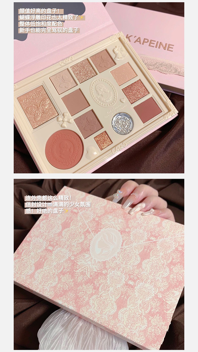 卡佩尔蕾丝眼影哑光腮红高光修容卧蚕一体脆香米液体眼影盘化妆