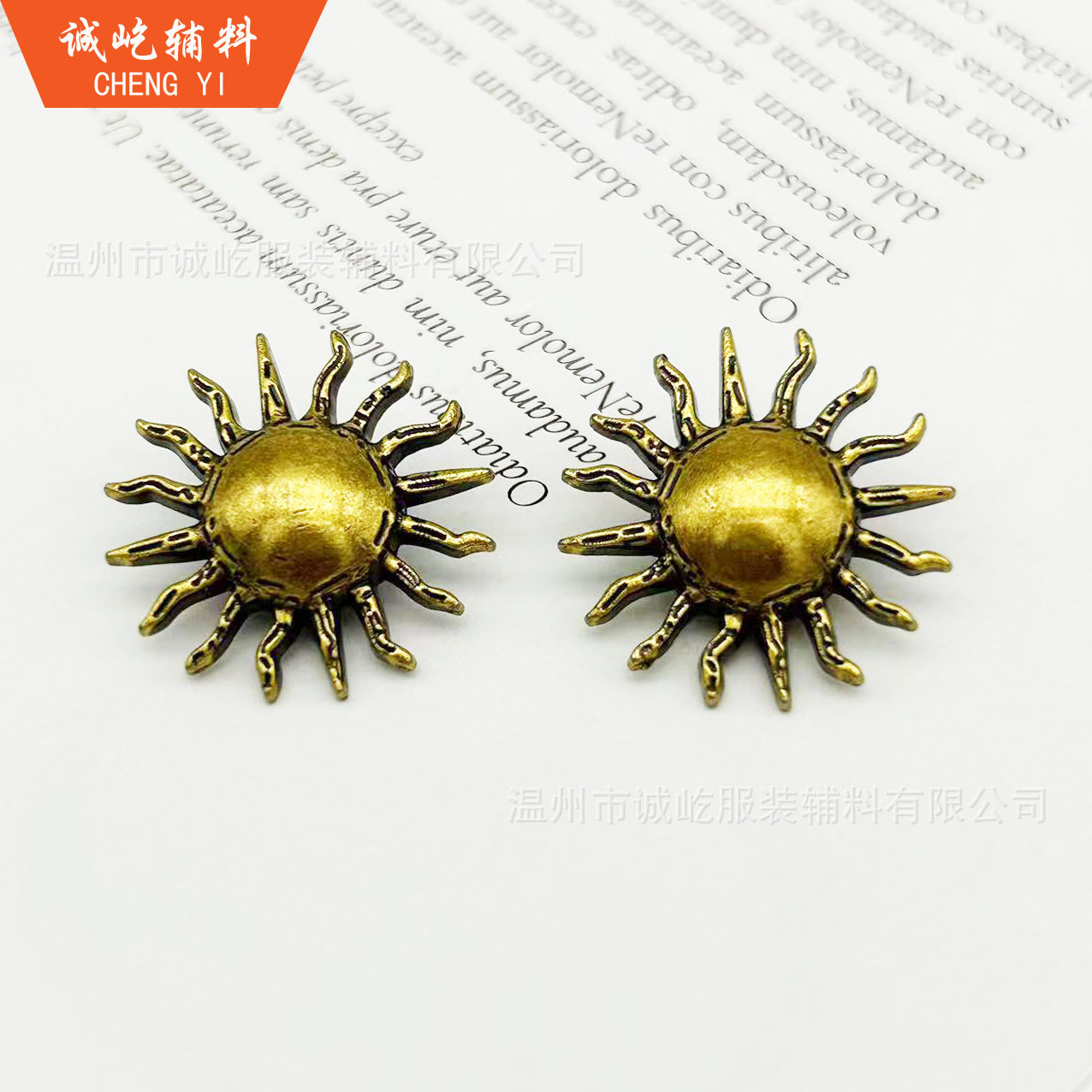 新しいレトロな金色の太陽の花の形のボタンの小さい香りの風のセーターのニットの馬の甲はボタンを飾ります。