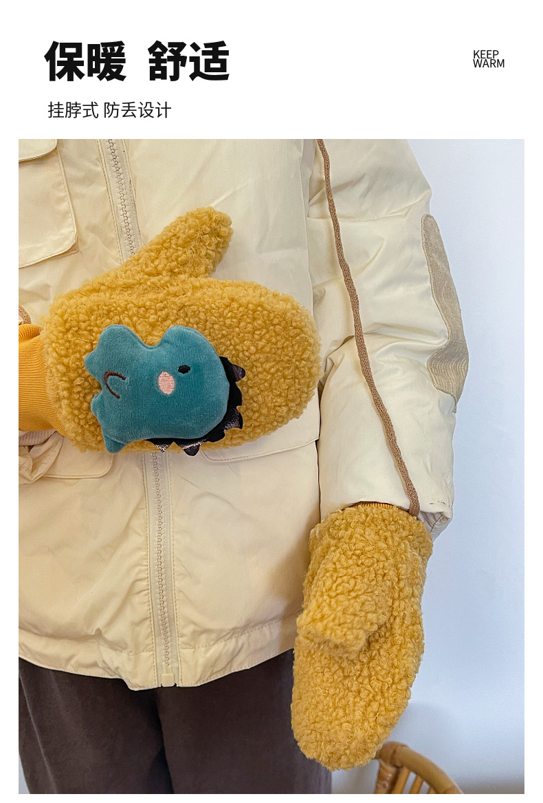 冬の新しい子供用手袋プラスベルベット暖かいベビー手袋かわいい漫画恐竜バッグ子供用首掛け手袋