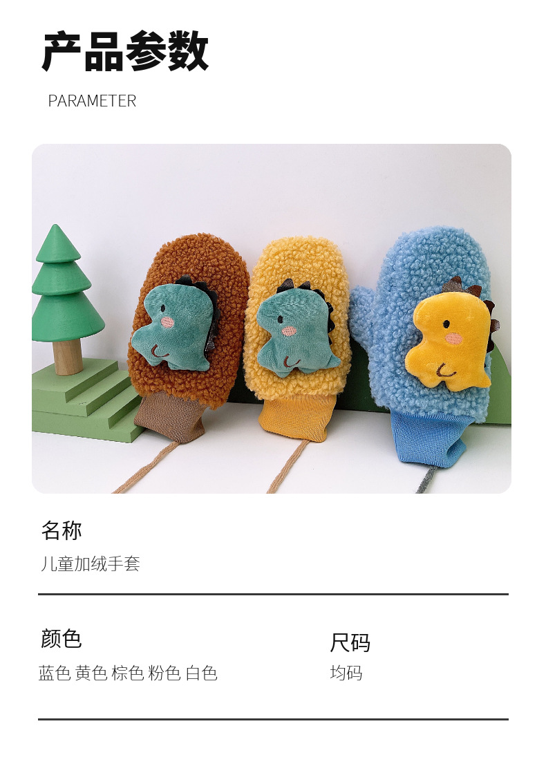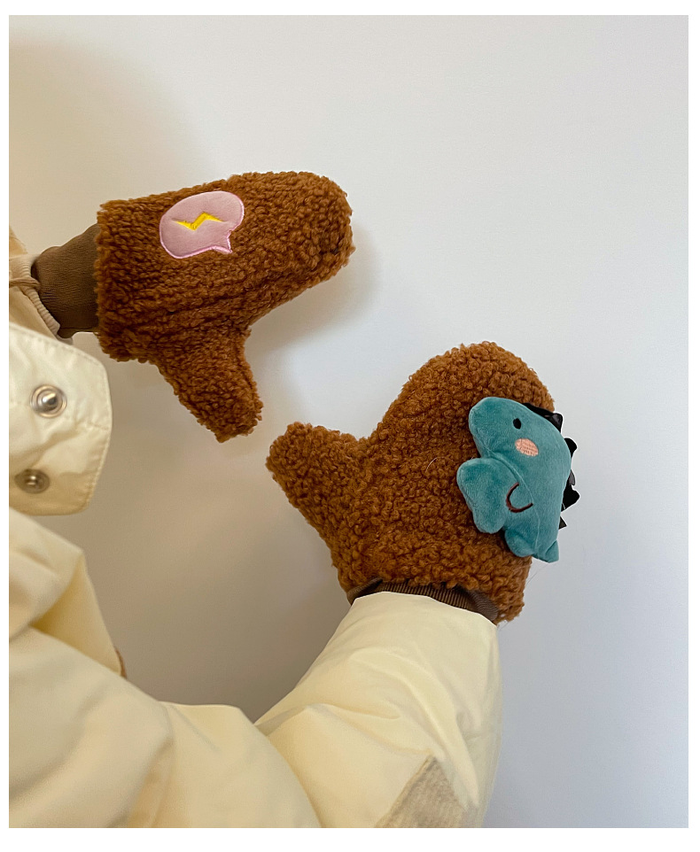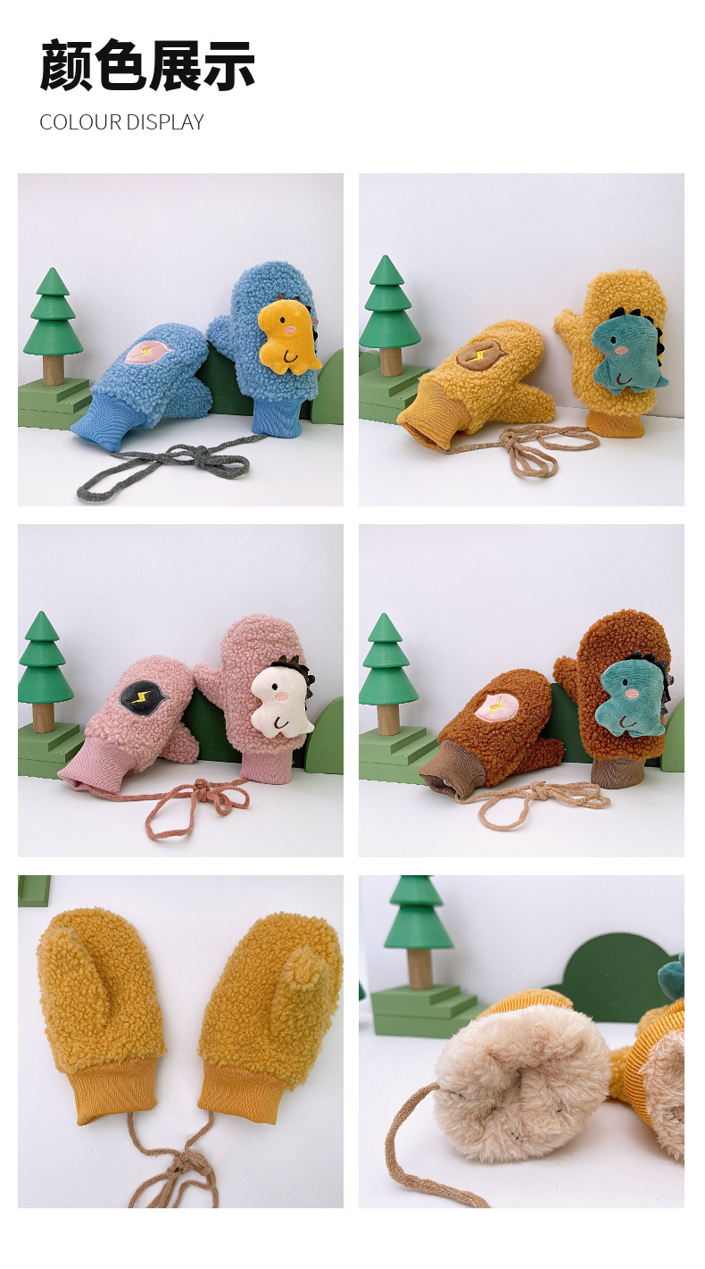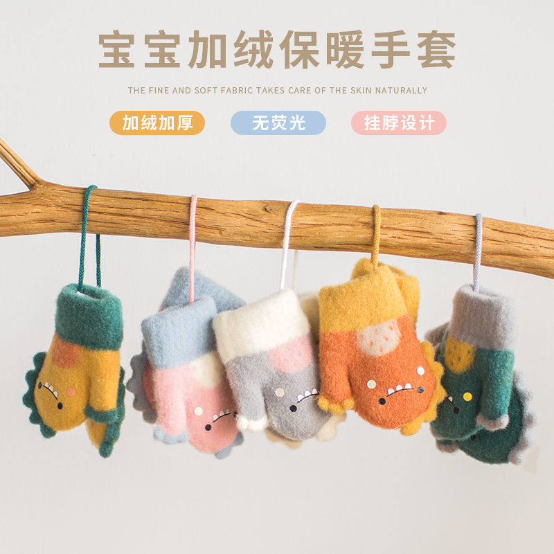 子供用手袋秋の冬に厚いベルベット保温冬に首を掛けて子供の男女の赤ちゃんのかわいい恐竜が手袋を包んでいる
