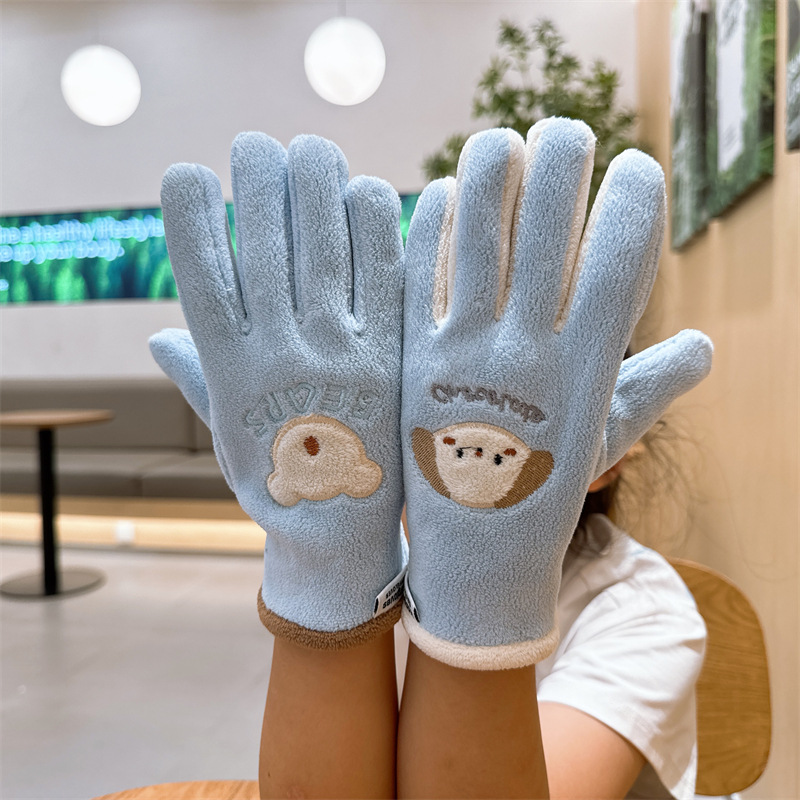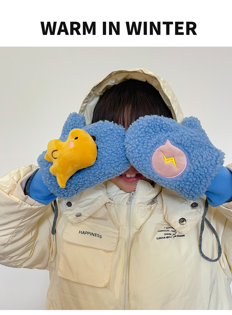 新しい子供手袋の中にベルベットの薄い赤ちゃん防寒手袋漫画刺繍屋外子供保温手袋