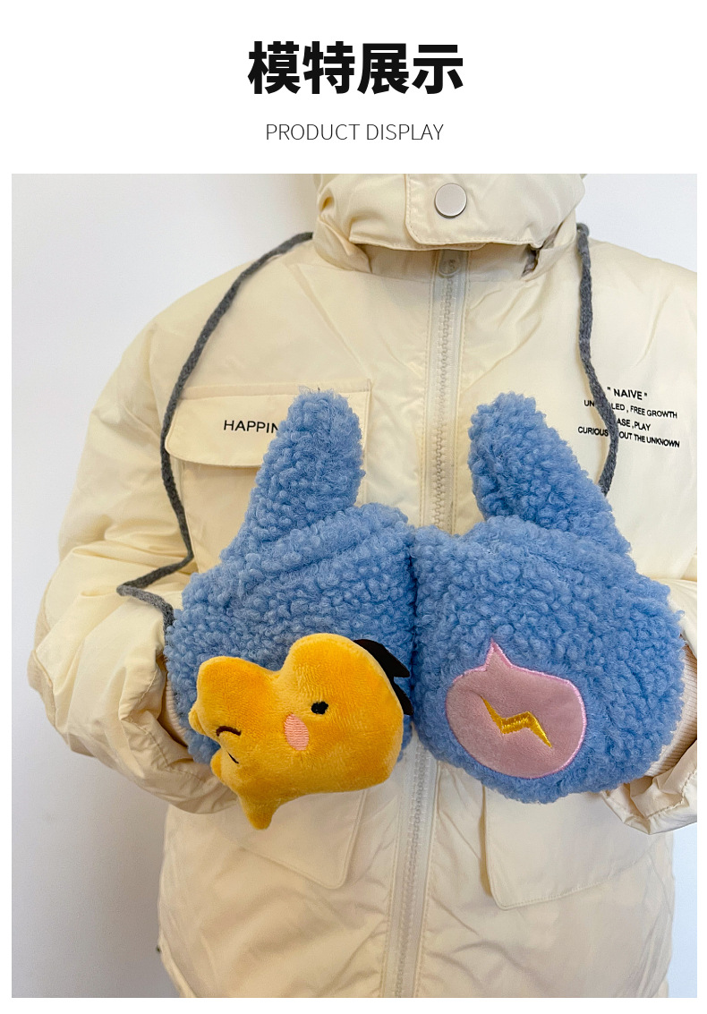 冬の新しい子供用暖かい手袋、屋外旅行漫画ベビー手袋、子供用首掛けかわいいバッグ手袋