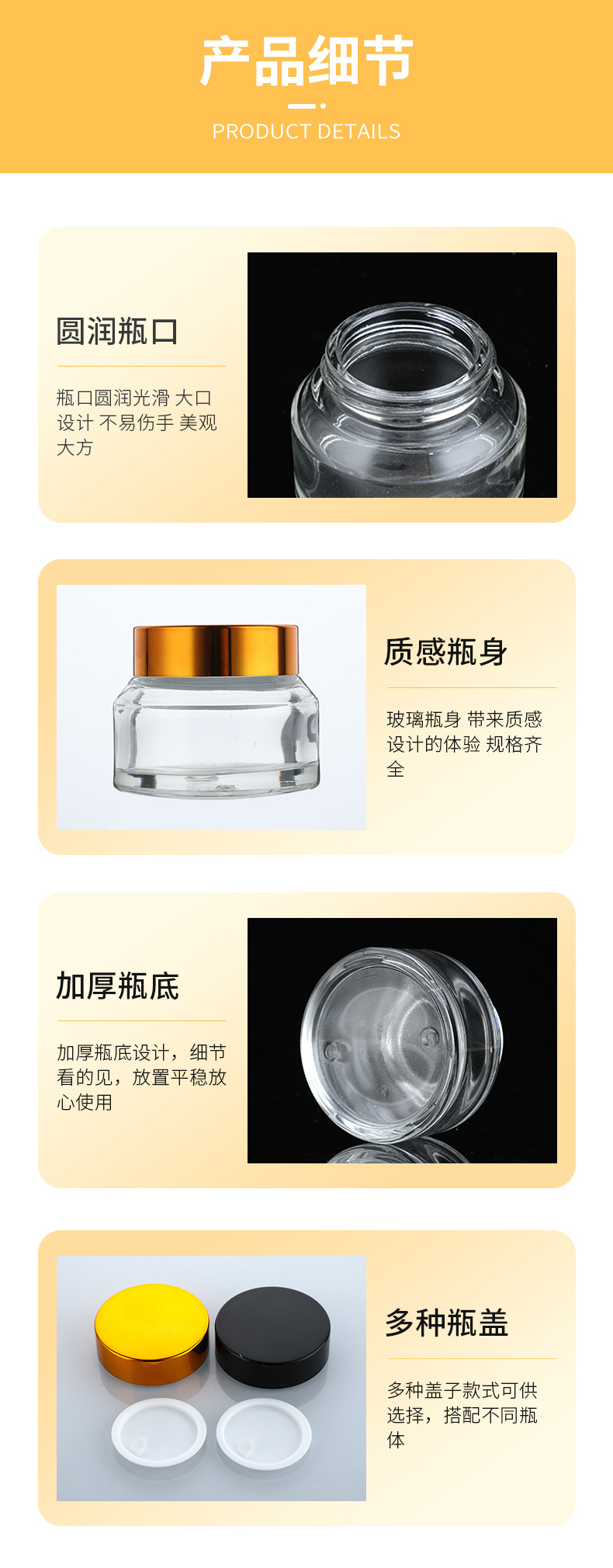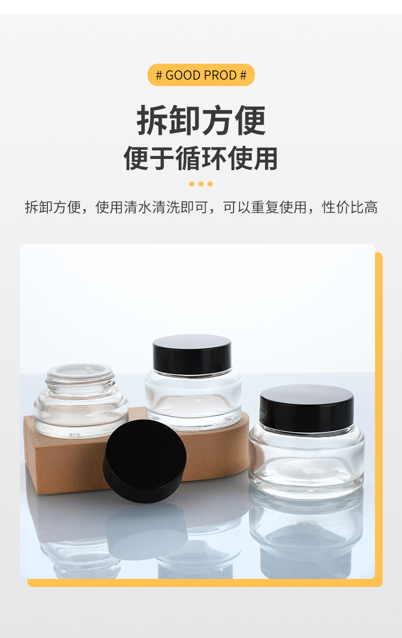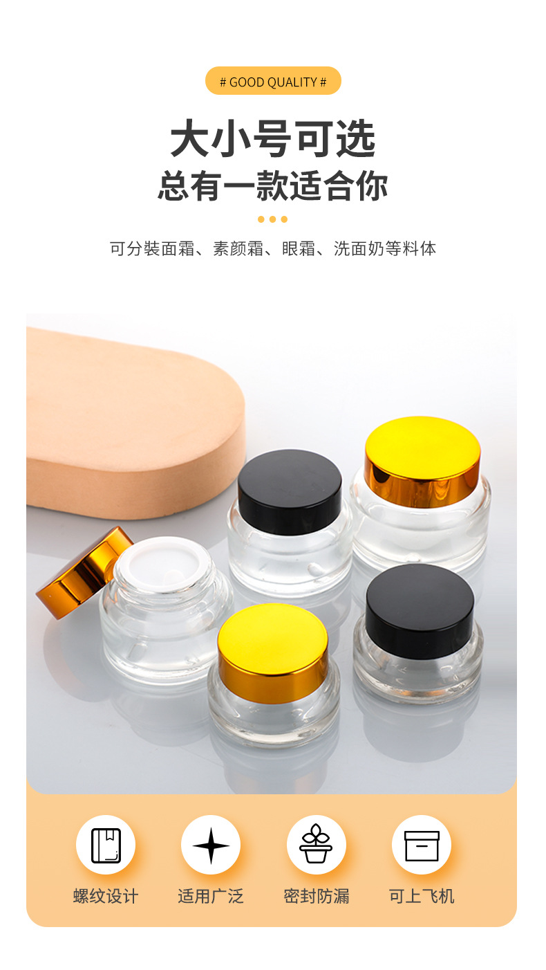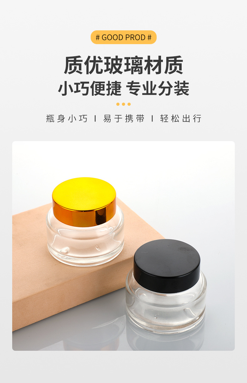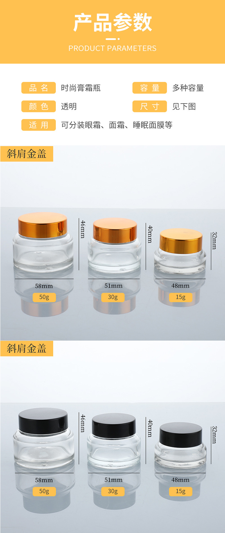 カスタマイズされた肩クリーム瓶アイクリーム分注瓶旅行携帯易分注クリーム瓶透明ガラス化粧品瓶