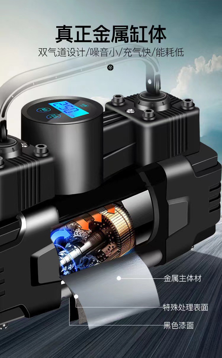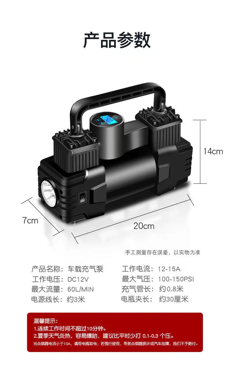 车载充气泵便携式车用打气泵汽车轮胎电动大功率12V 双缸气泵代发