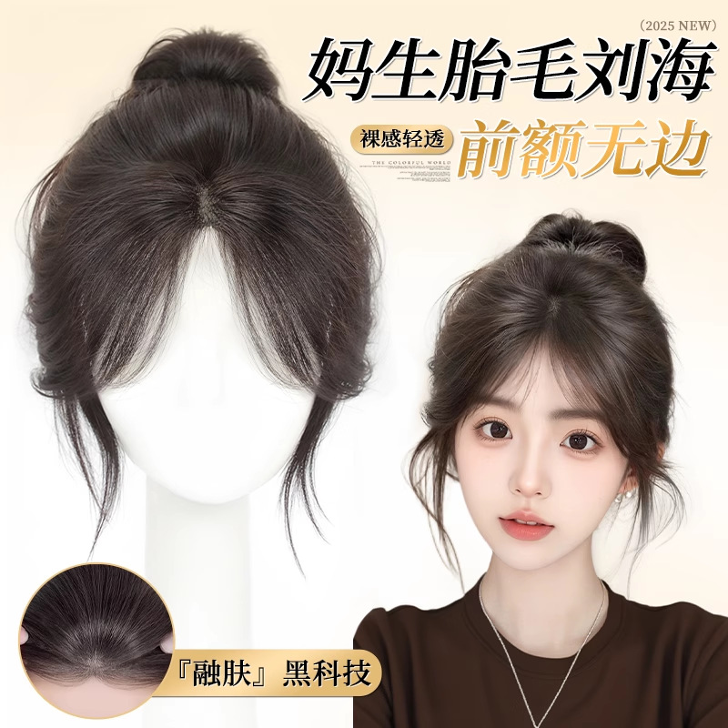 科尼假发胎毛刘海假发女片头顶补发增发量蓬松高颅顶仿真无痕八字