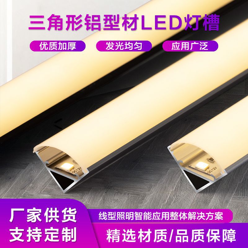 ラインランプカーテンボックスのランプ溝に45度の発光三角円弧面のリニアランプを設置します。