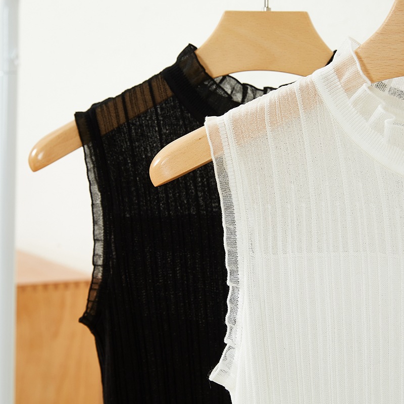 秋冬新作ウールレース半袖透かし彫りストラップ保温ベスト女性ボトムシャツ半高襟ニット卸売り