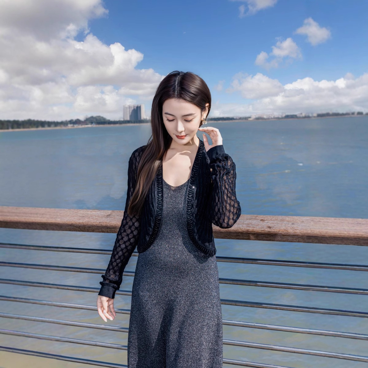現物2025夏の新型デザイン感は重工業の釘珠の透かし彫りの上着の短い長袖の氷糸のニット