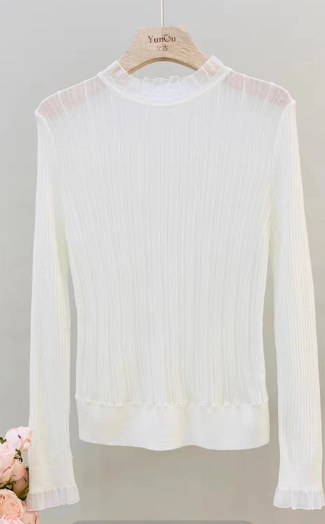 高級模造ウール素材のプルオーバー半袖インナーシャツ、女性用、レース襟、フリル付き、長袖ラウンドネック、エレガントでカジュアル、多用途