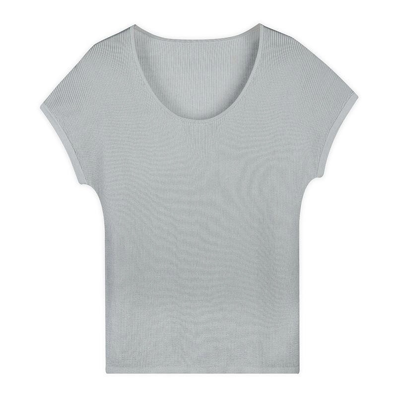 欧品天糸ニット上着女2025夏半袖丸首ゆるい曲珠薄い通気半分袖tシャツ
