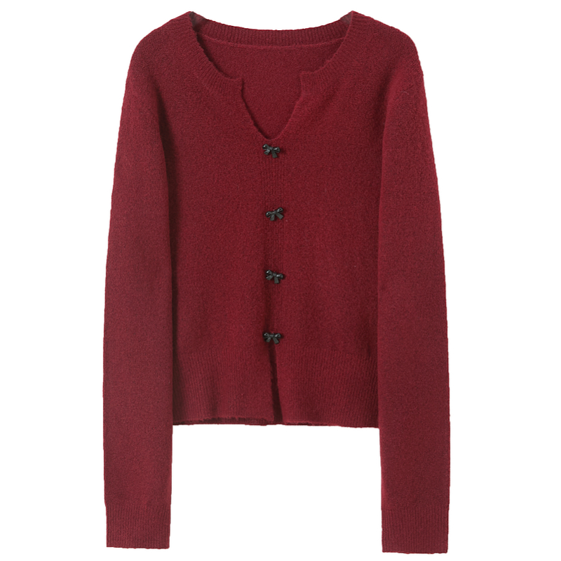 2024デパートの同タイプのiu系の蝶結びのボタンの薄いニットの春と秋の甘くて優しい風の小さいシャツの上着