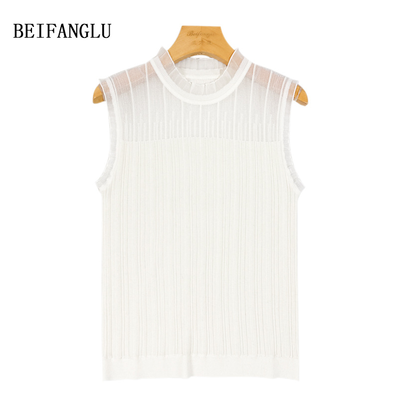 ファッションは春夏の新型の袖なしのウールのメリヤスレースに合わせて、女性のベストを身につけて痩せた純色の底のシャツを見せます。