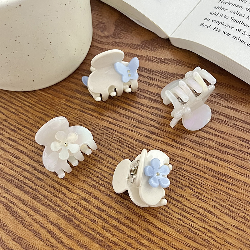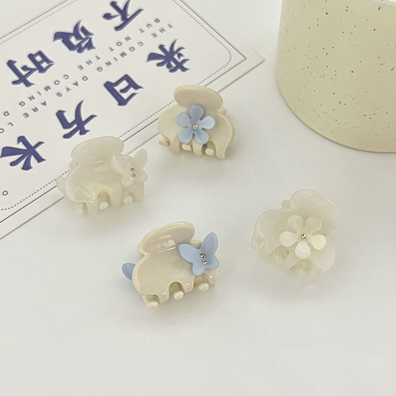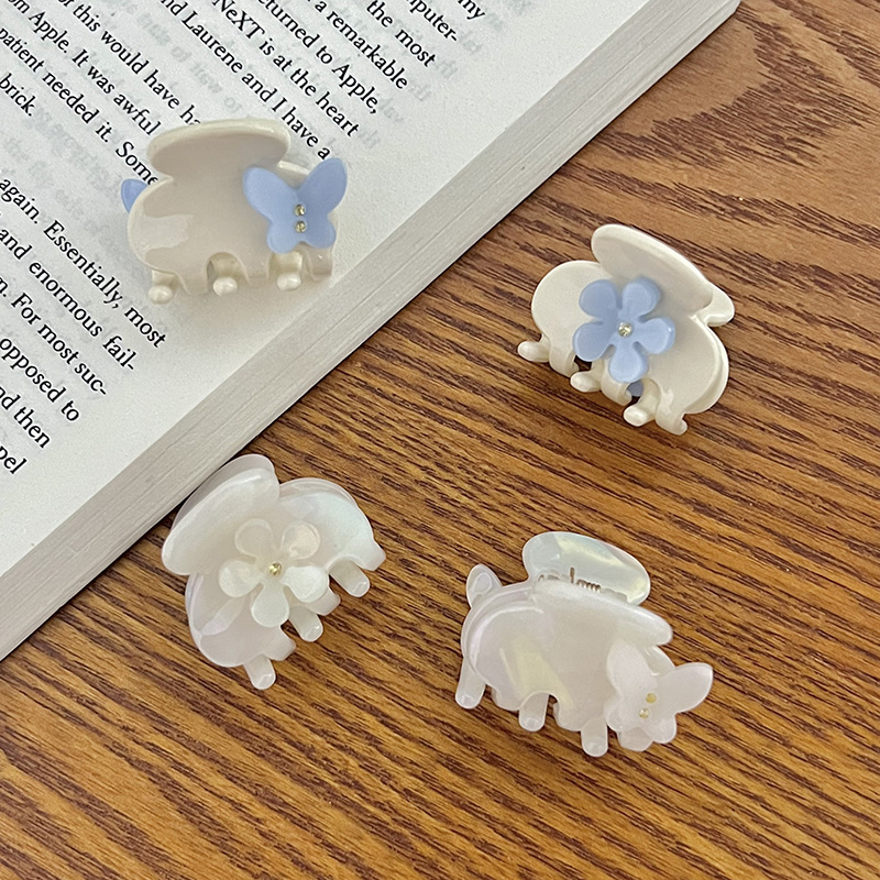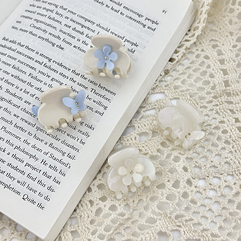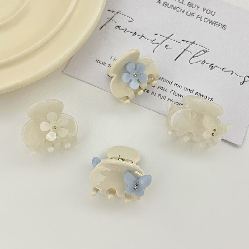 カラー 青い蝶のクリップ,白い小花のクリップ