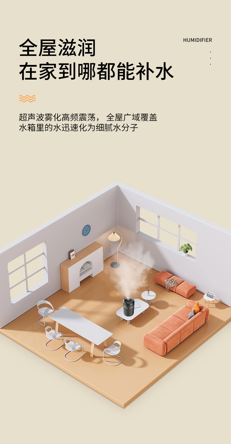 クロスボーダー新型家庭用寝室大霧量加湿器車載オフィスusb充電デスクトップ空気加湿器