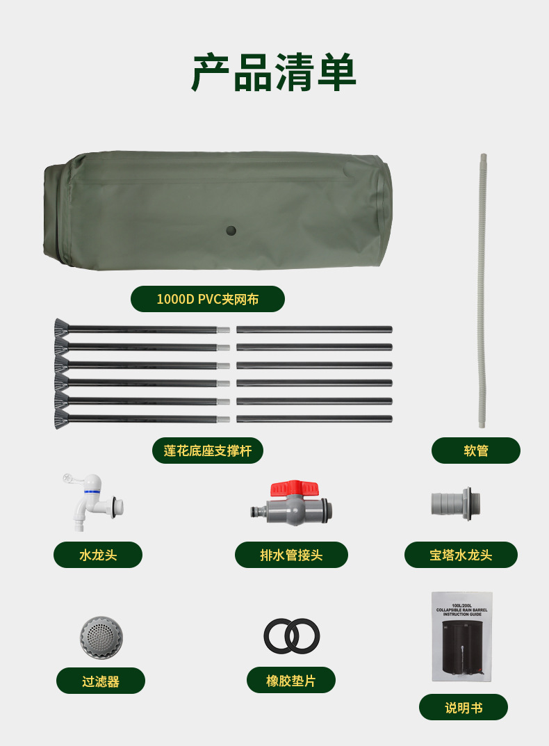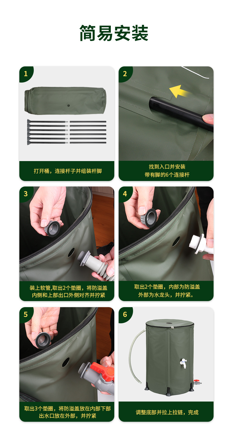 屋外造園灌漑用品 1000DPVC クリップメッシュ布ポータブル折りたたみ水貯蔵バケツ雨水収集バケツ
