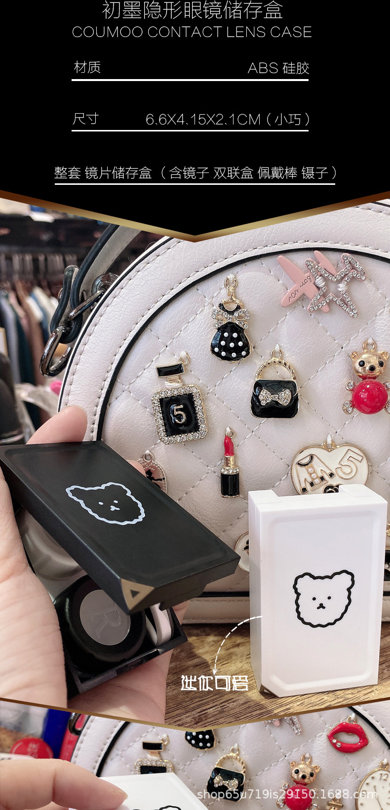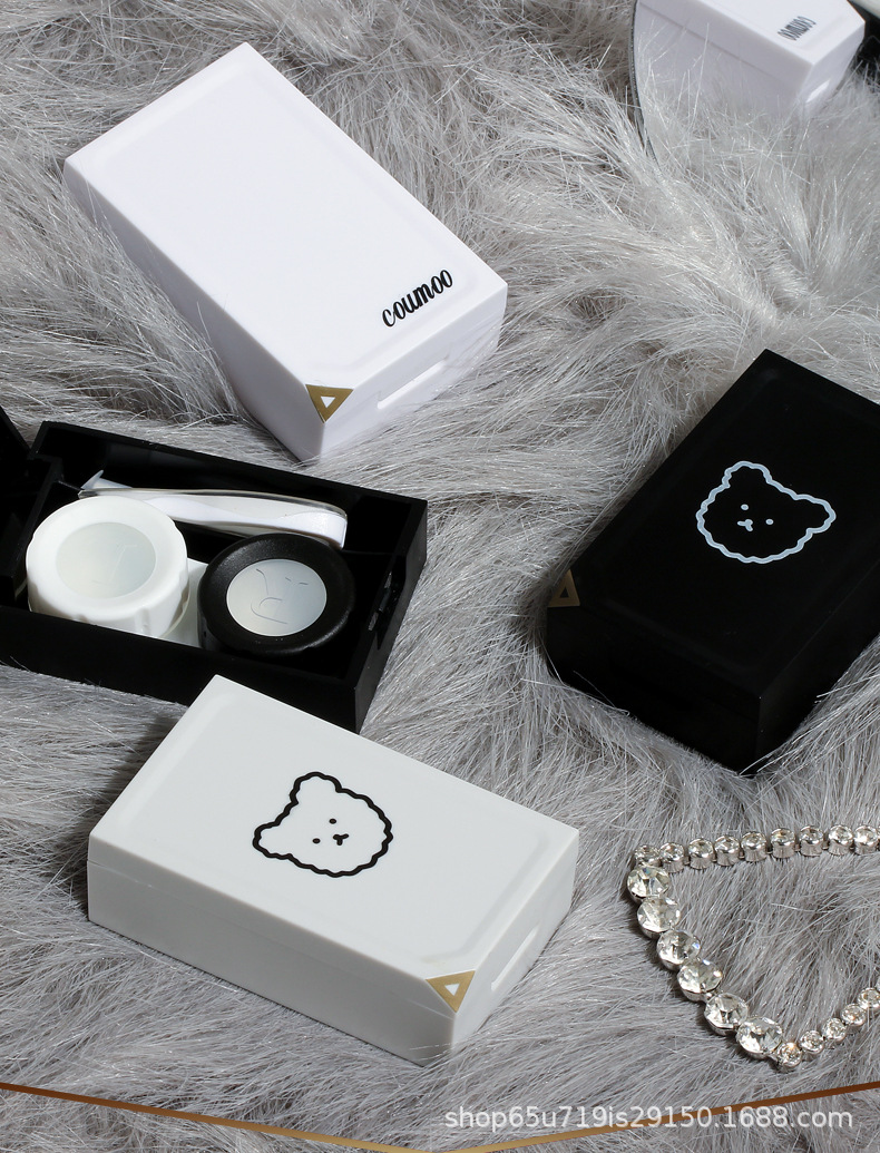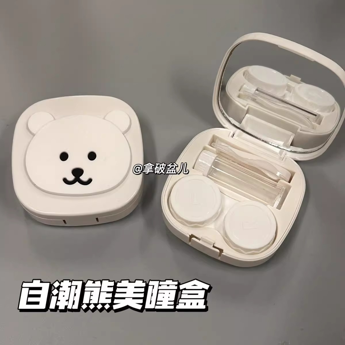 かわいい自虐的なクマの学生ケアボックスコンパニオン収納ボックスコンタクトレンズボックス女性のポータブル漏れ防止コンパクトコンタクトレンズボックス