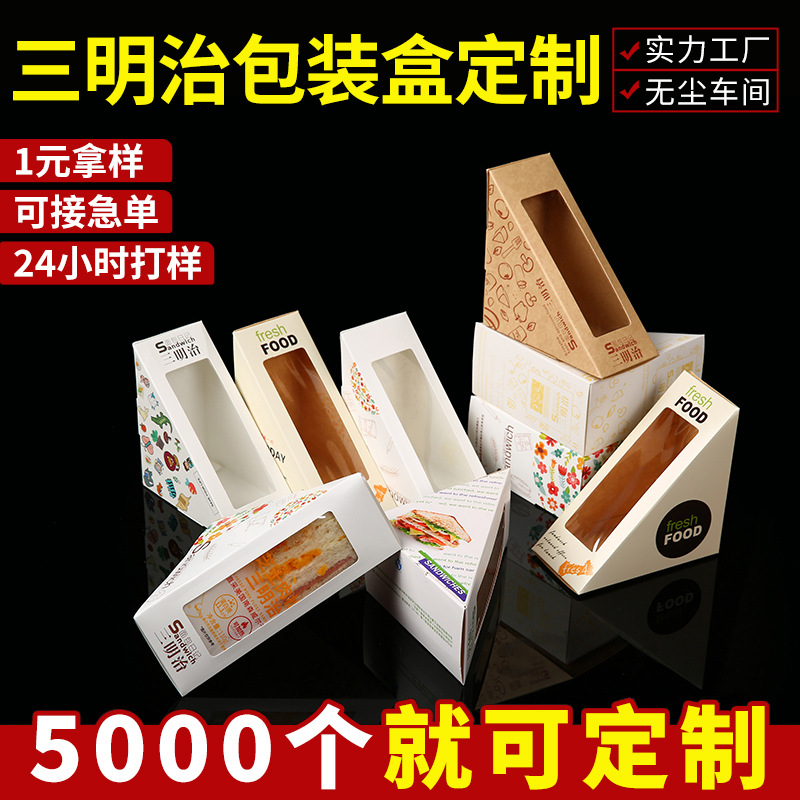 カスタムサンドイッチ包装箱窓開け透明サンドイッチ包装箱使い捨て西点防油白カード包装箱