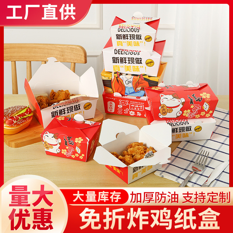 国潮商用無折フライドチキンの包装箱と鶏肉のポテトチップスのアルミ箔の外食箱とチャーハンの軽食のサラダ箱の卸売り