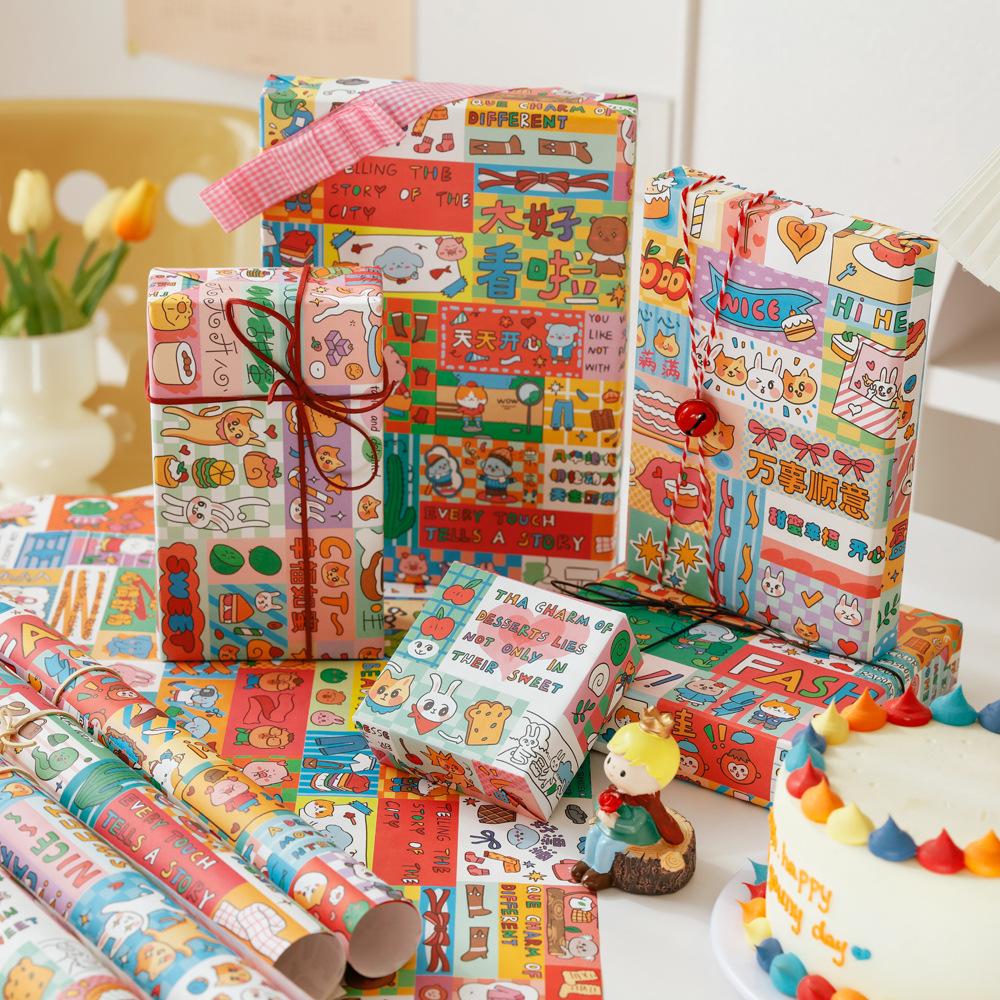 誕生日プレゼント紙落書き風プレゼント創意外装紙大判アニメかわいいインスタ風手作り素材