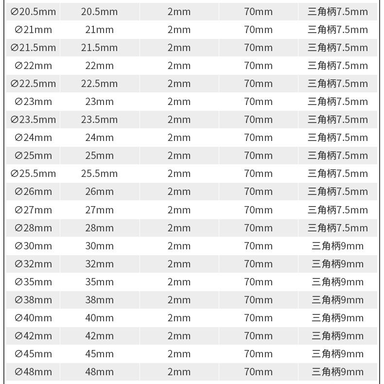 型番 12mm,13mm,14mm,15mm,16mm,17mm,18mm,18.5mm,19mm,20mm,20.5mm,21mm,21.5mm,22mm,22.5mm,23mm,24mm,25mm,25.5mm,26mm,27mm,28mm,30mm,32mm,35mm,38mm,40mm,42mm,45mm,48mm,50mm,53mm,55mm,60mm,65mm,70mm,75mm,80mm,85mm,90mm,95mm,100mm,センタードリル5*45(12-32mm専用),センタードリル6*45(35-100mm専用)