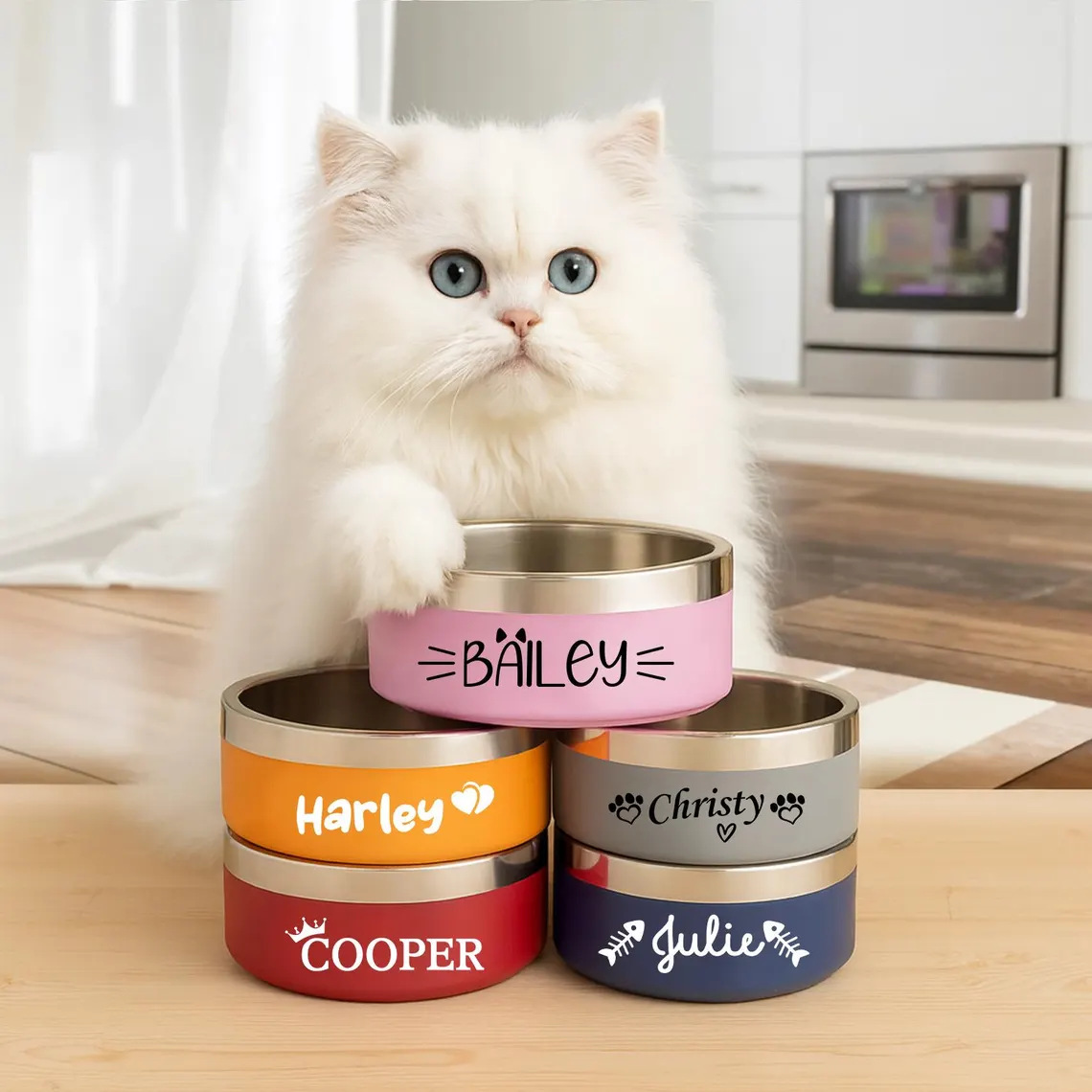 304 ステンレス鋼のキャットフードボウル、ペットボウル、首を保護する猫の飲料水、斜めカット、高さを高め、転倒防止、犬用ライスボウル、子供用ボウル
