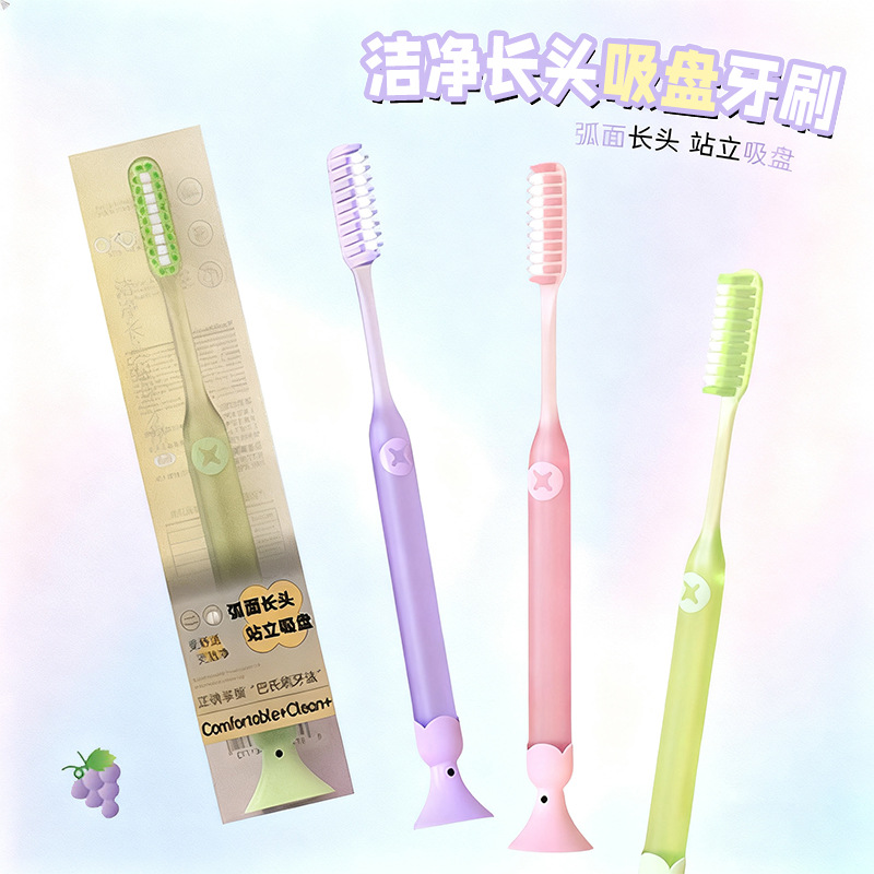 洁净长头吸盘牙刷懒人软毛牙刷家用弧面长头独立装清洁防滑柄牙刷