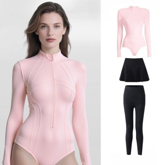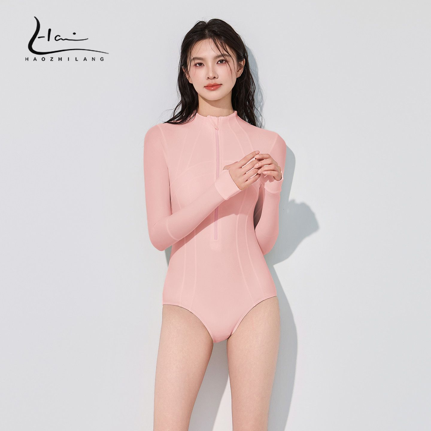 2025新款ins风长袖防晒保守高领拉链连体游泳衣浮潜冲浪潜水服女
