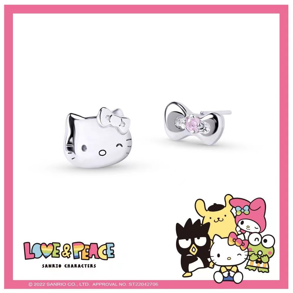 サンリオキティ猫ピアス女の子ハローキティ耳饰り高级小众デザイン感ピアスクリスマスプレゼント