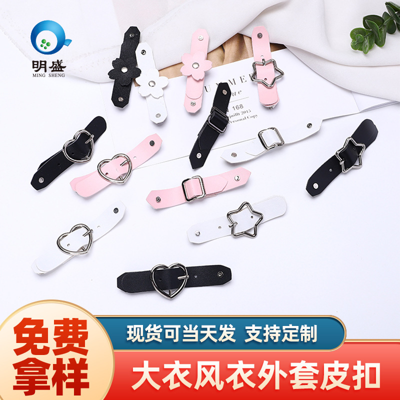 金属革のボタンの愛の星JKの制服のプリーツのスカートの装飾のボタンのPUの革のボタンはベルトのバックルを調節することができます。