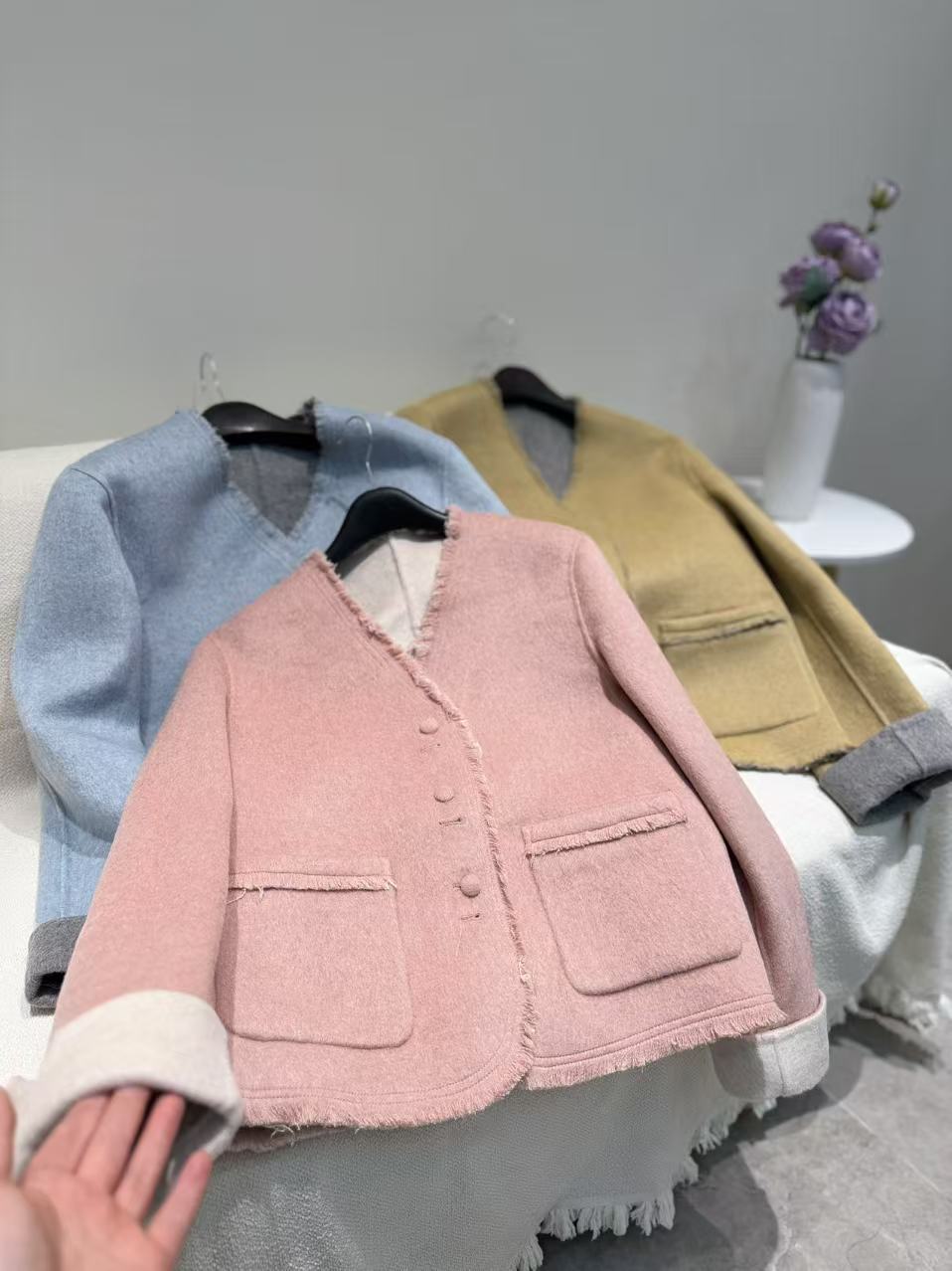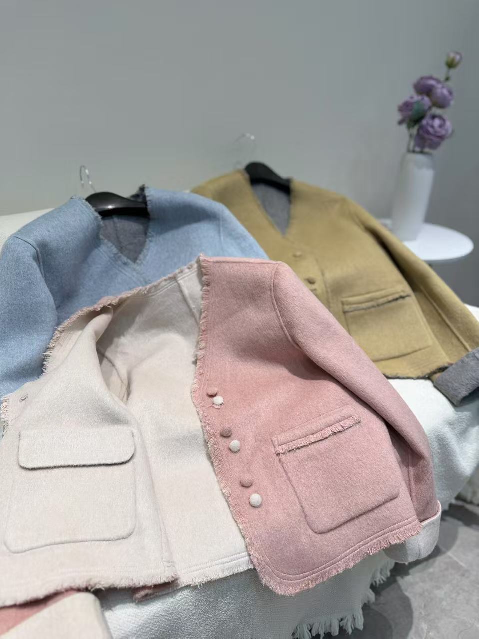 【長期在庫】リバーシブルスペシャル 2025秋冬 タッセルVネックマカロンカラー両面ウールコート