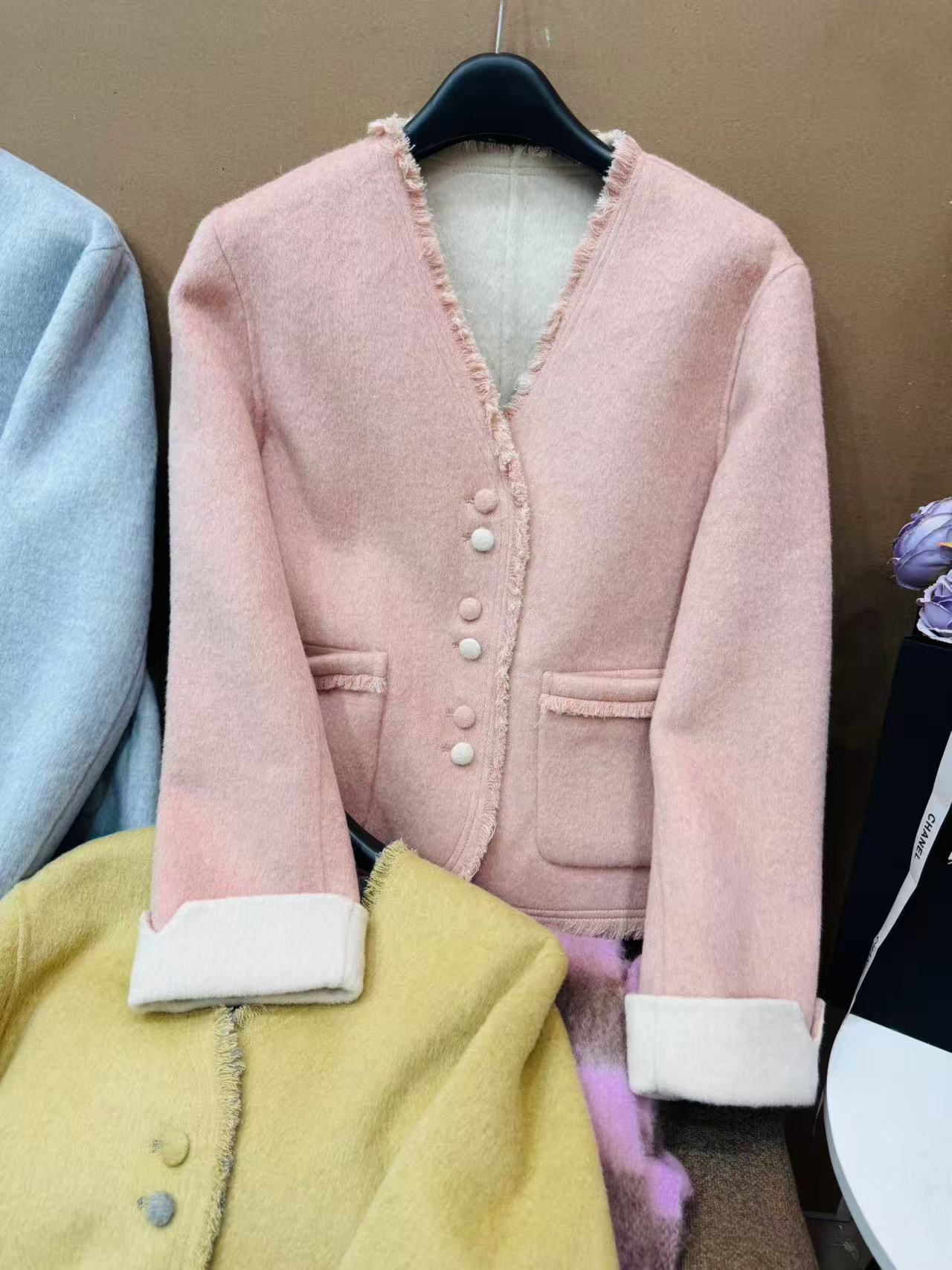 長期在庫あり 2025年 ショート丈 シャネル風 両面ウールコート 新高級ウールジャケット クラシックで万能