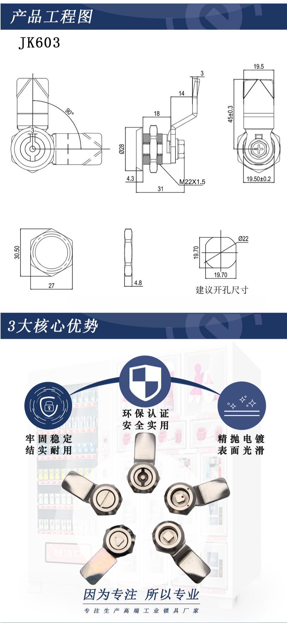 メーカーカスタマイズ JK311 ターンタングロック 304 ステンレス鋼プレスロック自動カード発行機ロックセルフサービス自動販売機
